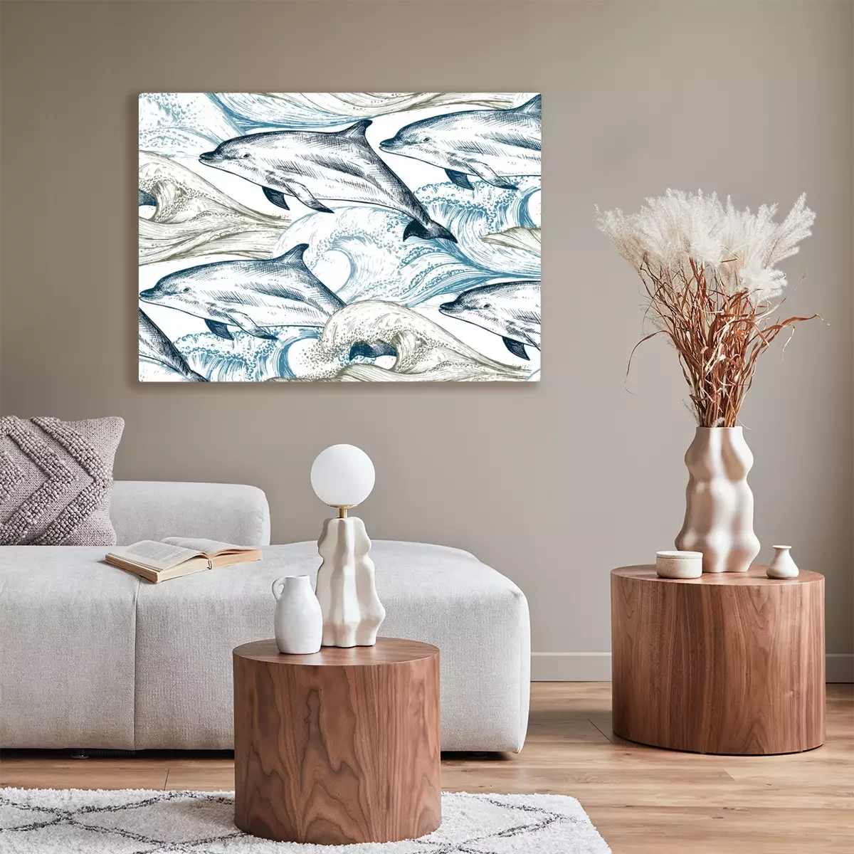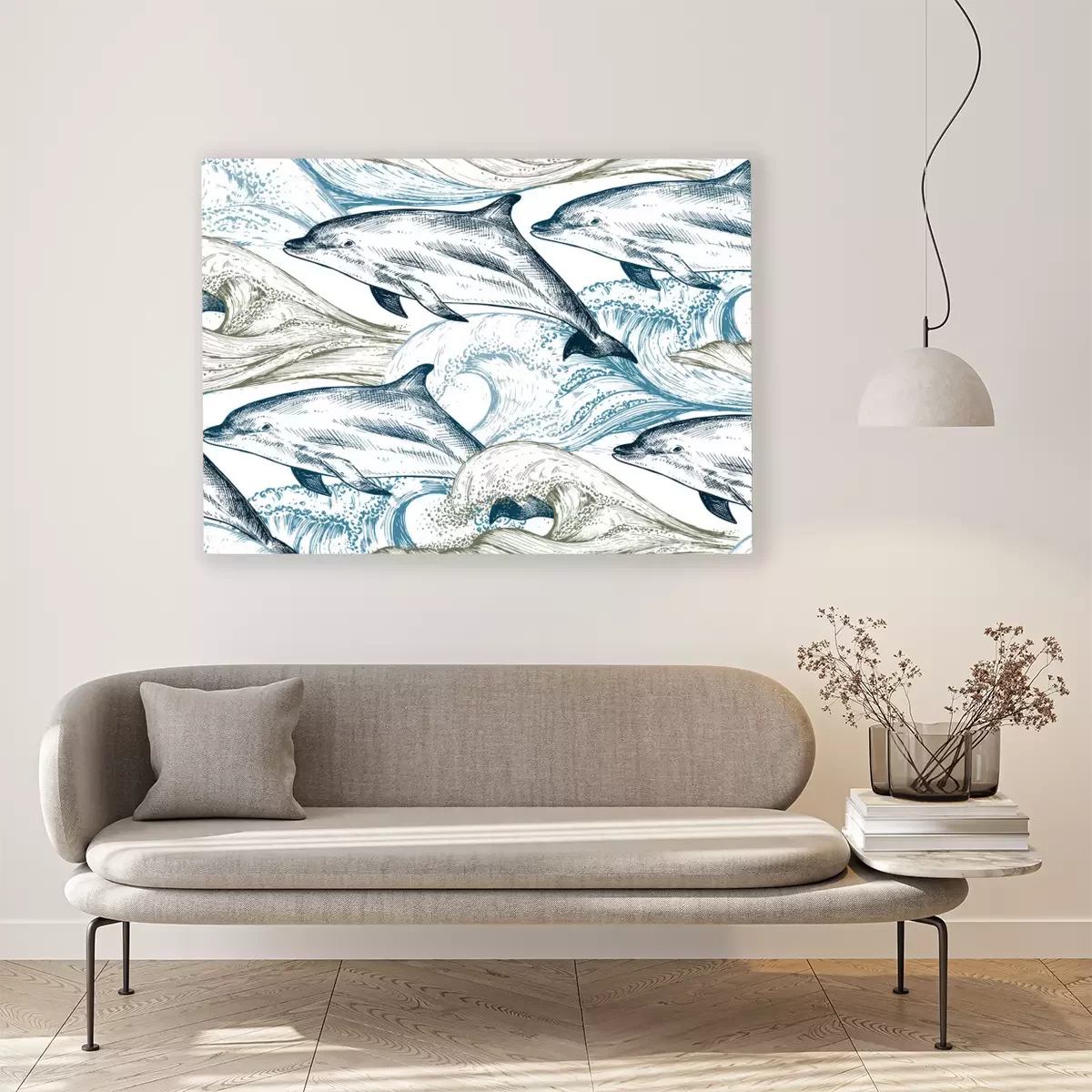 Canvas: Dolfijnen op de achtergrond van zeegolven