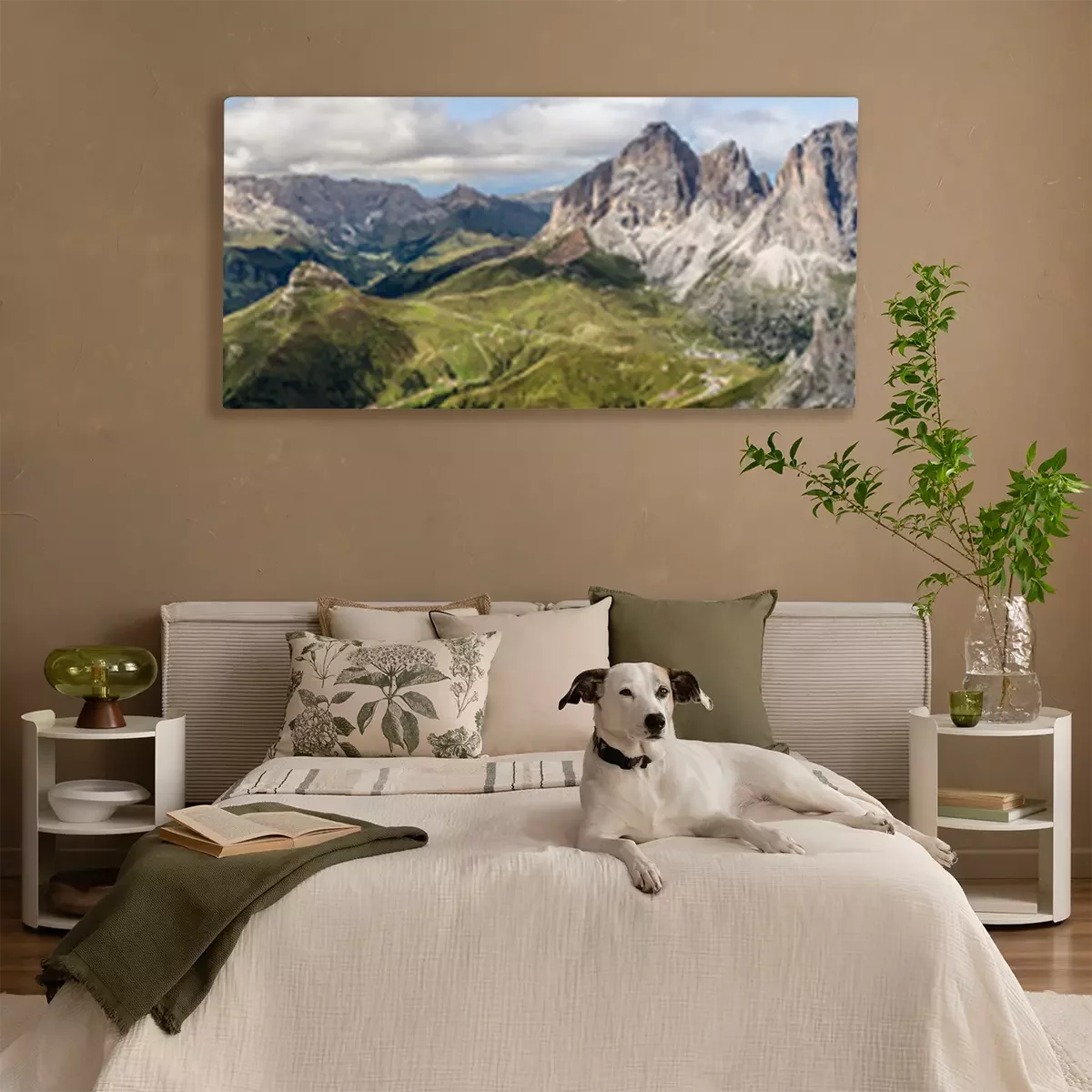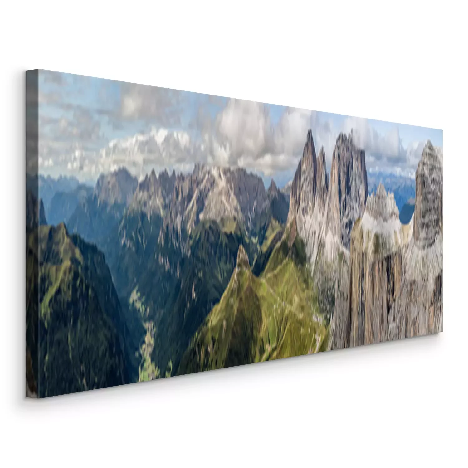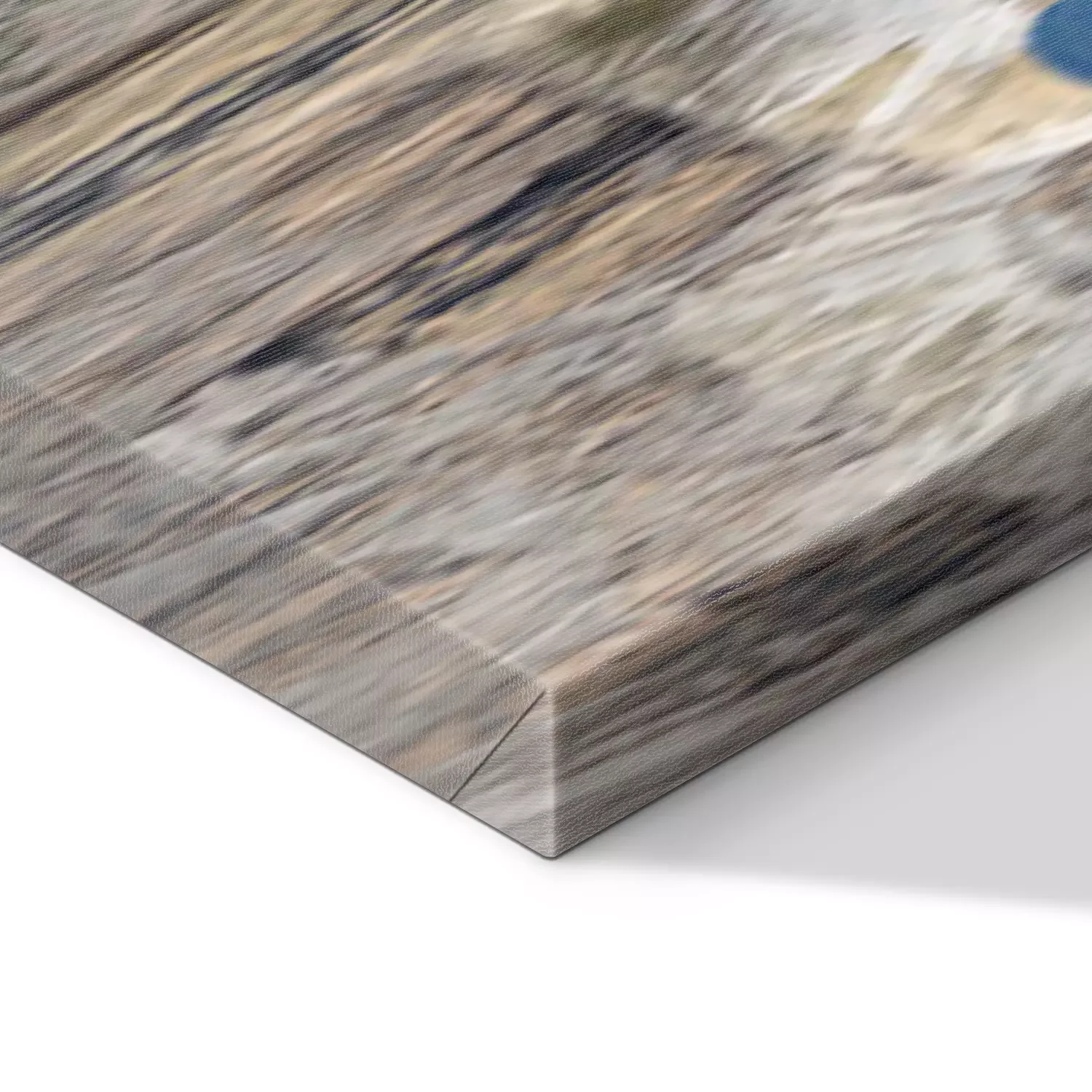 De print wordt aangebracht op hoogwaardig canvas dat op een schildersweefgetouw (spieraam) wordt gespannen. Omdat de print de zijranden bedekt, hoeft het ontwerp niet met een extra kader te worden omlijst. Wij raden ook composities aan die uit meerdere foto's bestaan en zo een coherente compositie vormen.