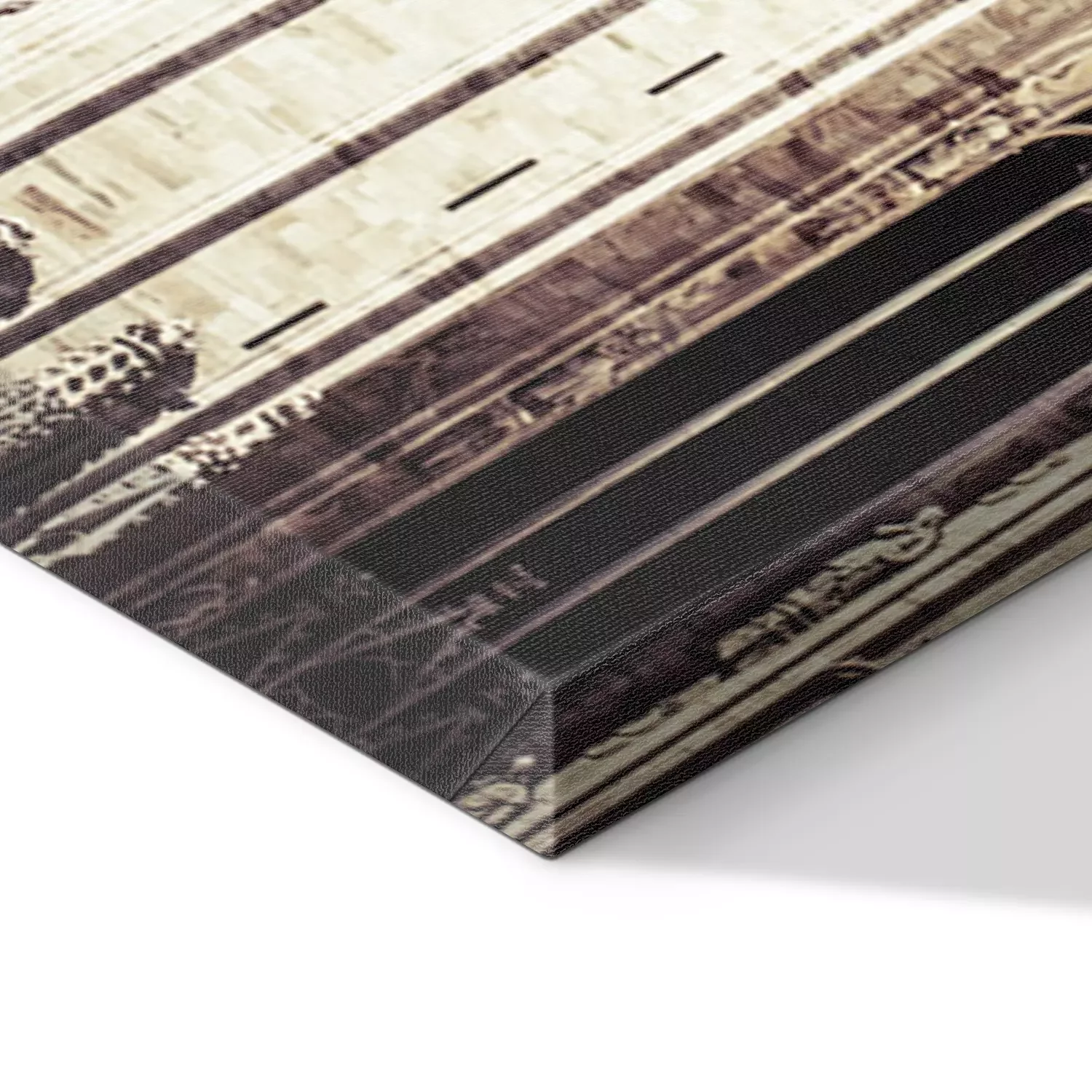 De print wordt aangebracht op hoogwaardig canvas dat op een schildersweefgetouw (spieraam) wordt gespannen. Omdat de print de zijranden bedekt, hoeft het ontwerp niet met een extra kader te worden omlijst. Wij raden ook composities aan die uit meerdere foto's bestaan en zo een coherente compositie vormen.