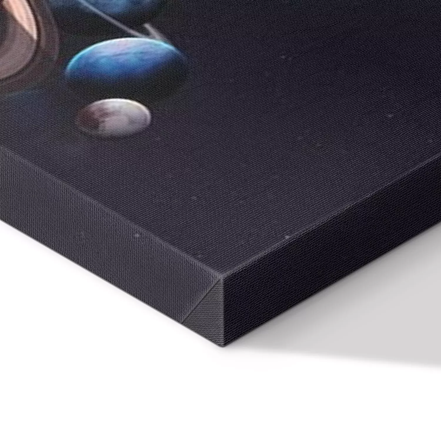 De print wordt aangebracht op hoogwaardig canvas dat op een schildersweefgetouw (spieraam) wordt gespannen. Omdat de print de zijranden bedekt, hoeft het ontwerp niet met een extra kader te worden omlijst. Wij raden ook composities aan die uit meerdere foto's bestaan en zo een coherente compositie vormen.