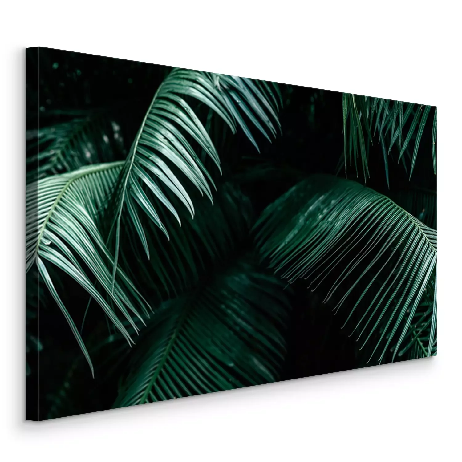 Canvas: Donkergroene palmbladeren in een tropisch woud