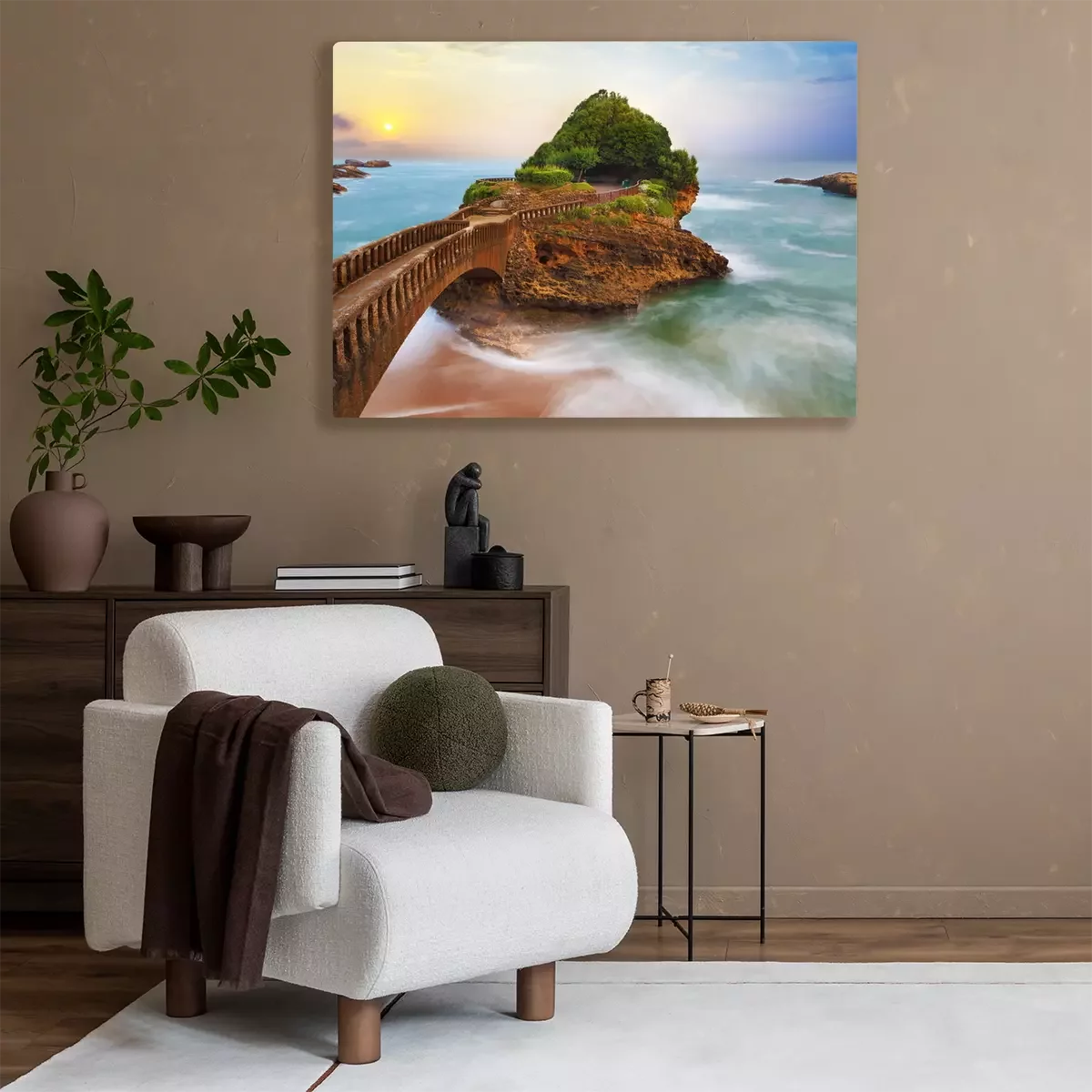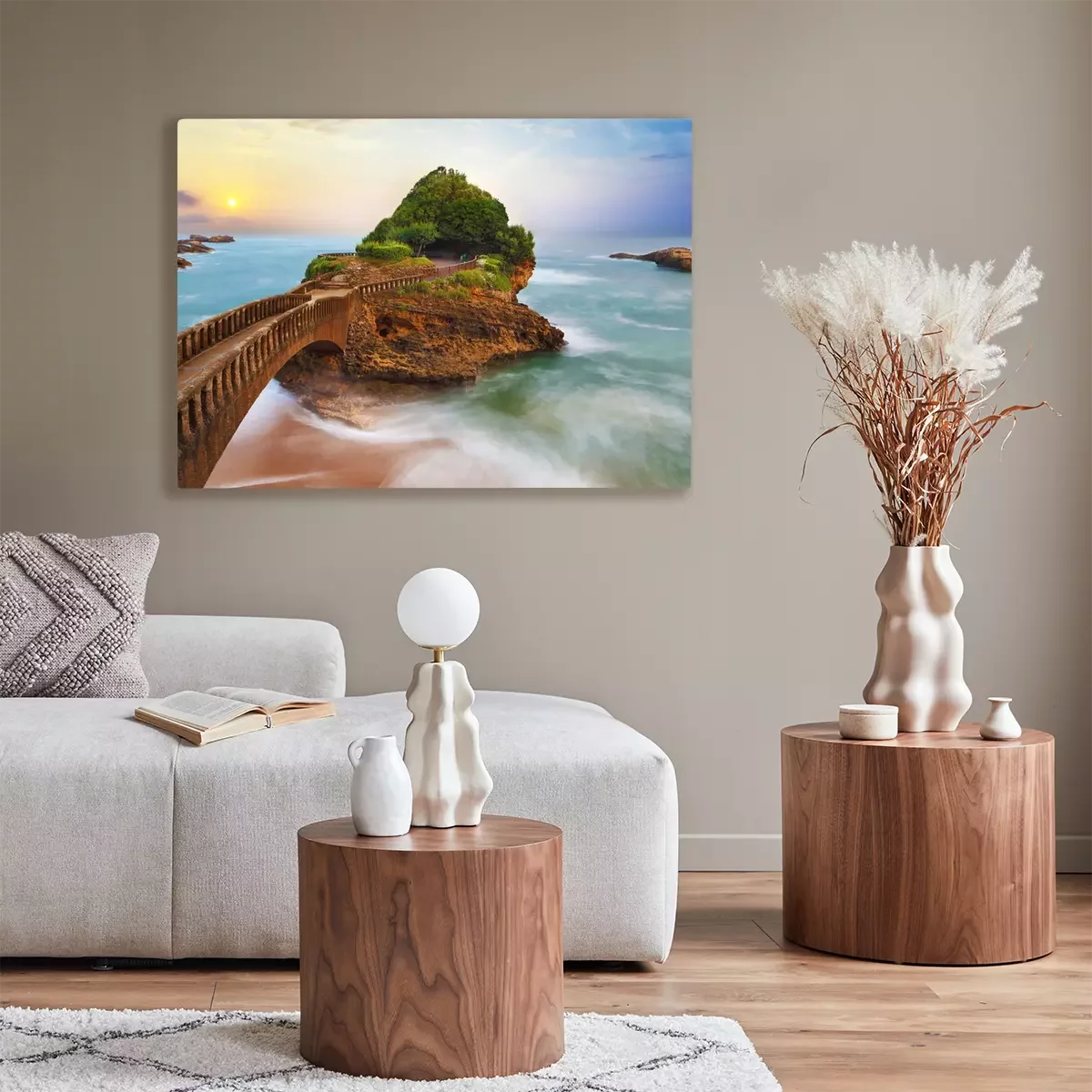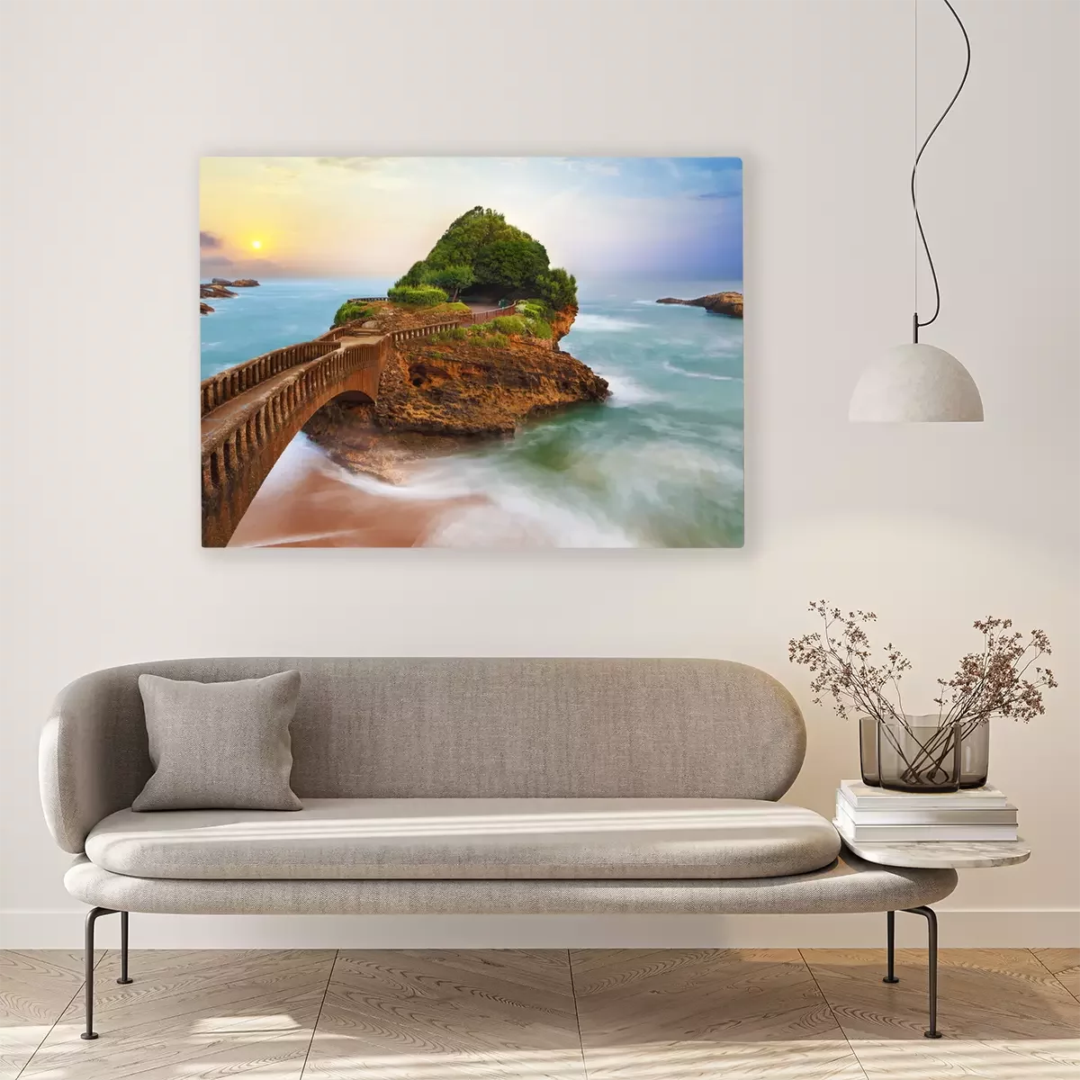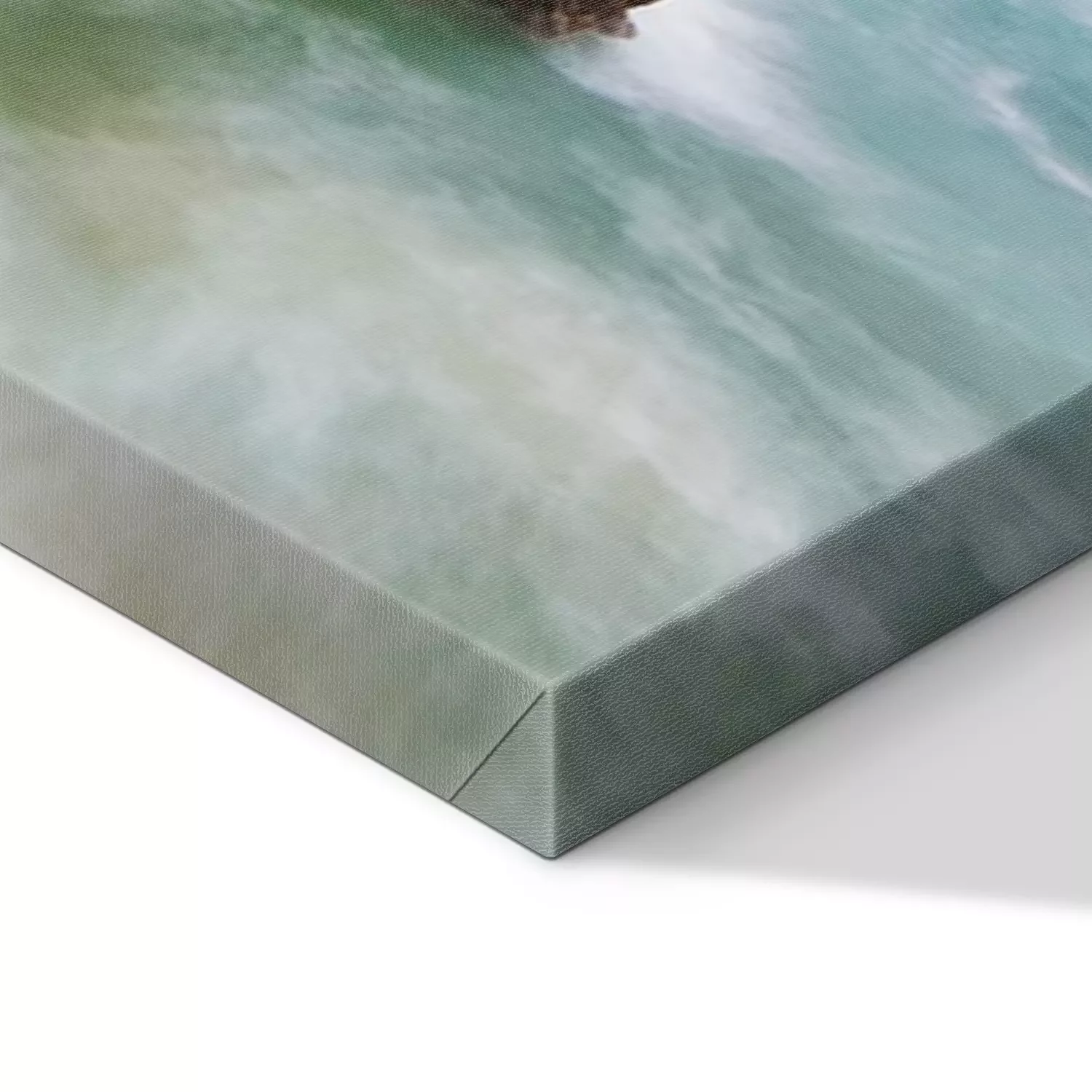 De print wordt aangebracht op hoogwaardig canvas dat op een schildersweefgetouw (spieraam) wordt gespannen. Omdat de print de zijranden bedekt, hoeft het ontwerp niet met een extra kader te worden omlijst. Wij raden ook composities aan die uit meerdere foto's bestaan en zo een coherente compositie vormen.