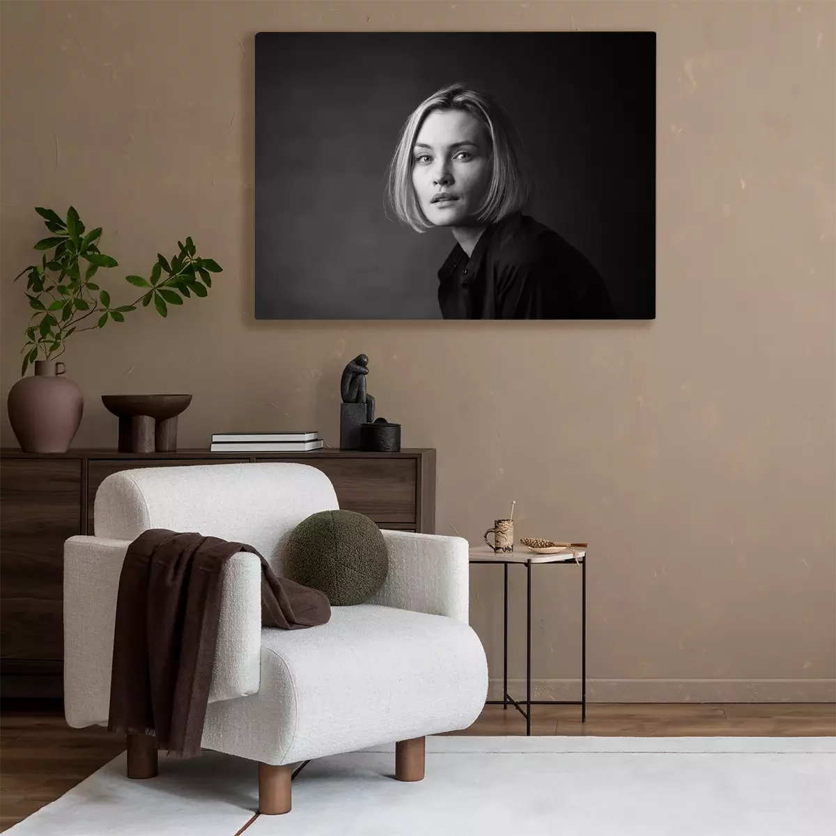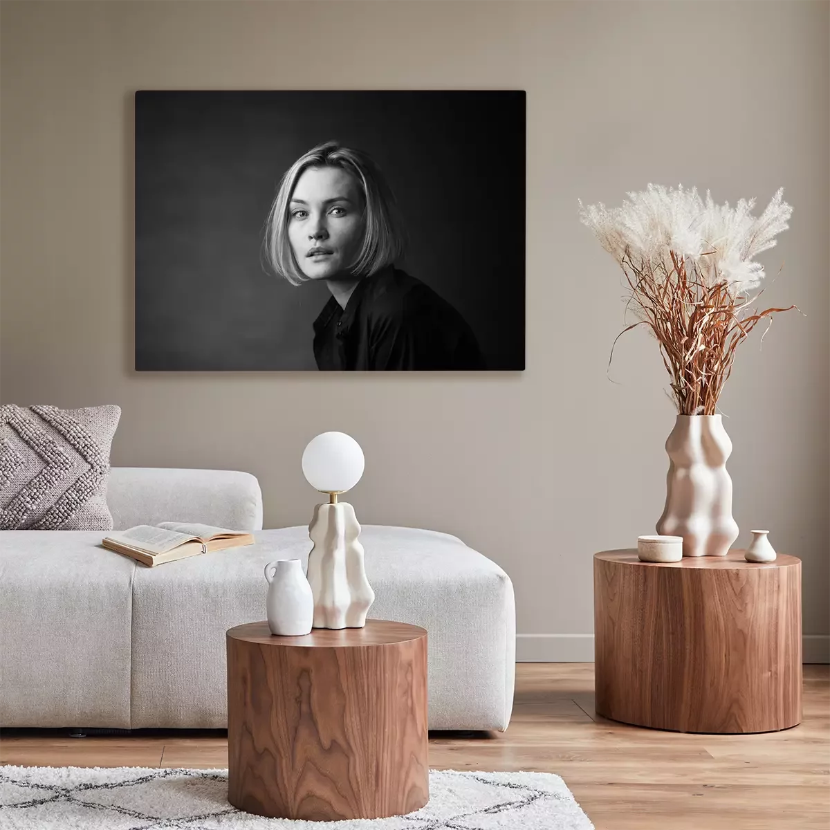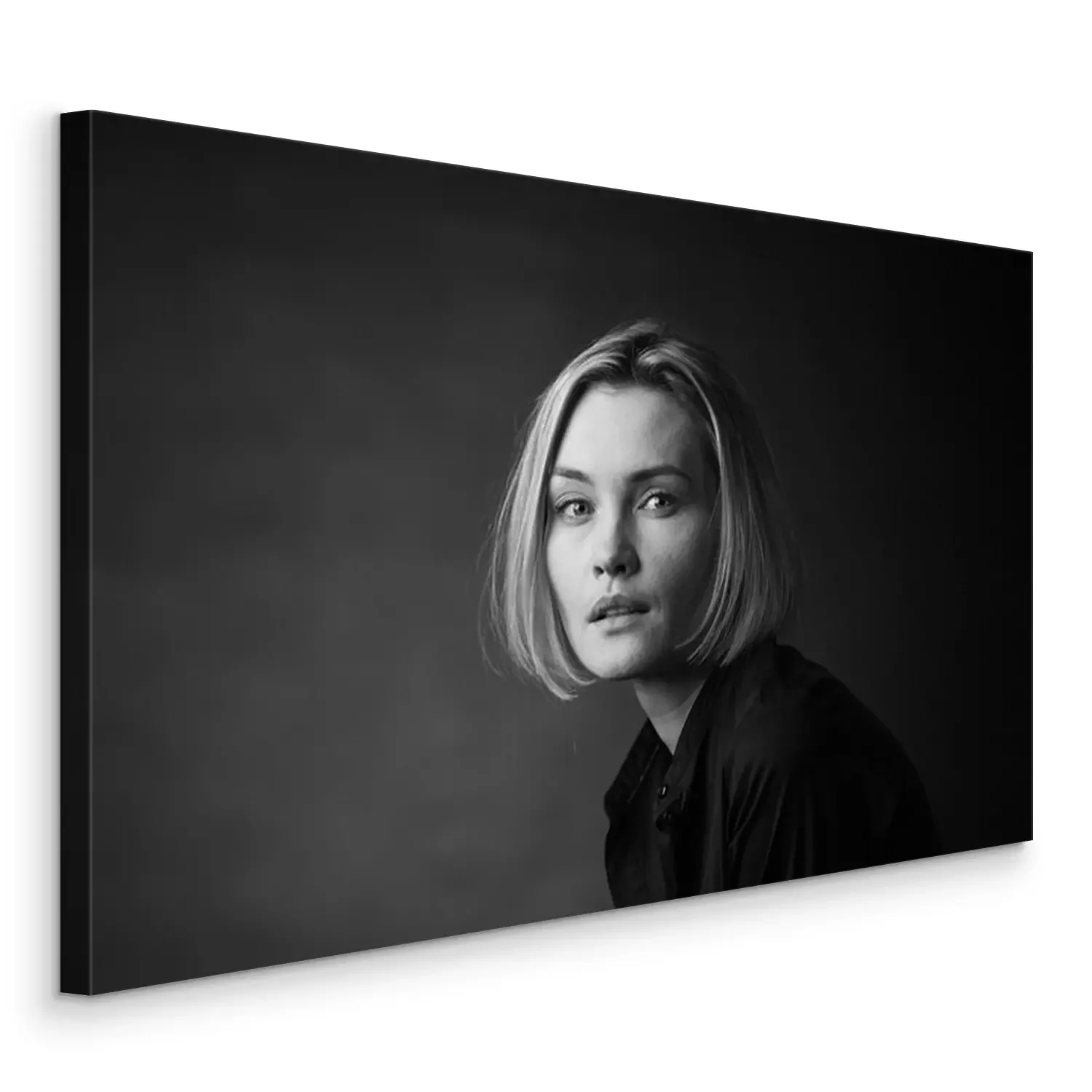 Canvas: Dramatic black and white portrait of a beautiful woman on a dark background