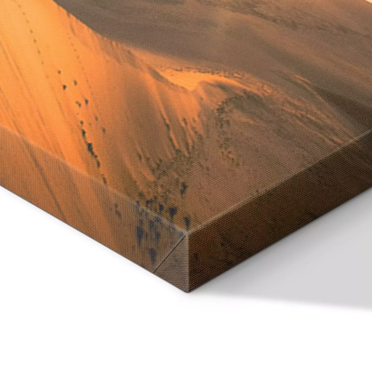 De print wordt aangebracht op hoogwaardig canvas dat op een schildersweefgetouw (spieraam) wordt gespannen. Omdat de print de zijranden bedekt, hoeft het ontwerp niet met een extra kader te worden omlijst. Wij raden ook composities aan die uit meerdere foto's bestaan en zo een coherente compositie vormen.