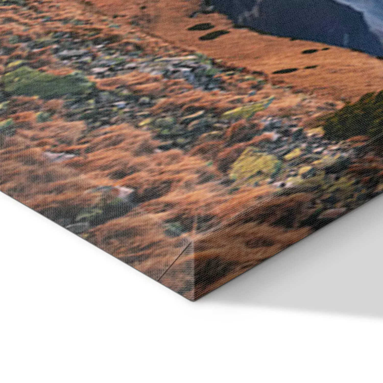 De print wordt aangebracht op hoogwaardig canvas dat op een schildersweefgetouw (spieraam) wordt gespannen. Omdat de print de zijranden bedekt, hoeft het ontwerp niet met een extra kader te worden omlijst. Wij raden ook composities aan die uit meerdere foto's bestaan en zo een coherente compositie vormen.