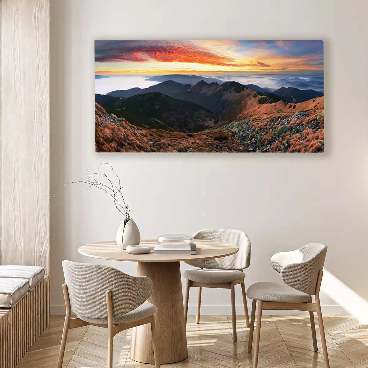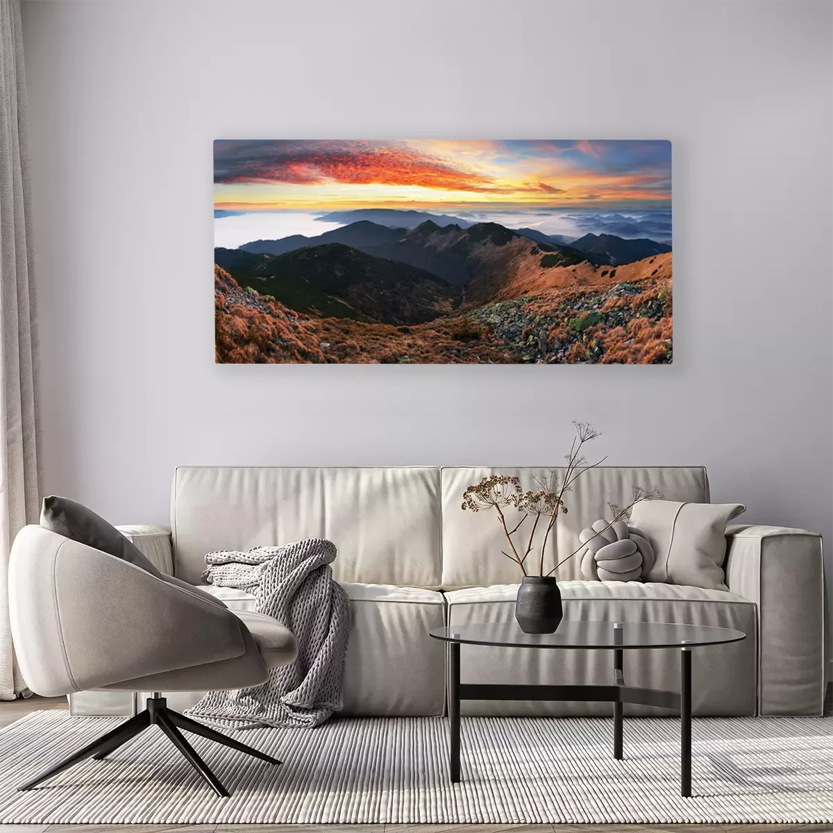 Canvas: Dramatische zonsondergang in de herfst berglandschap