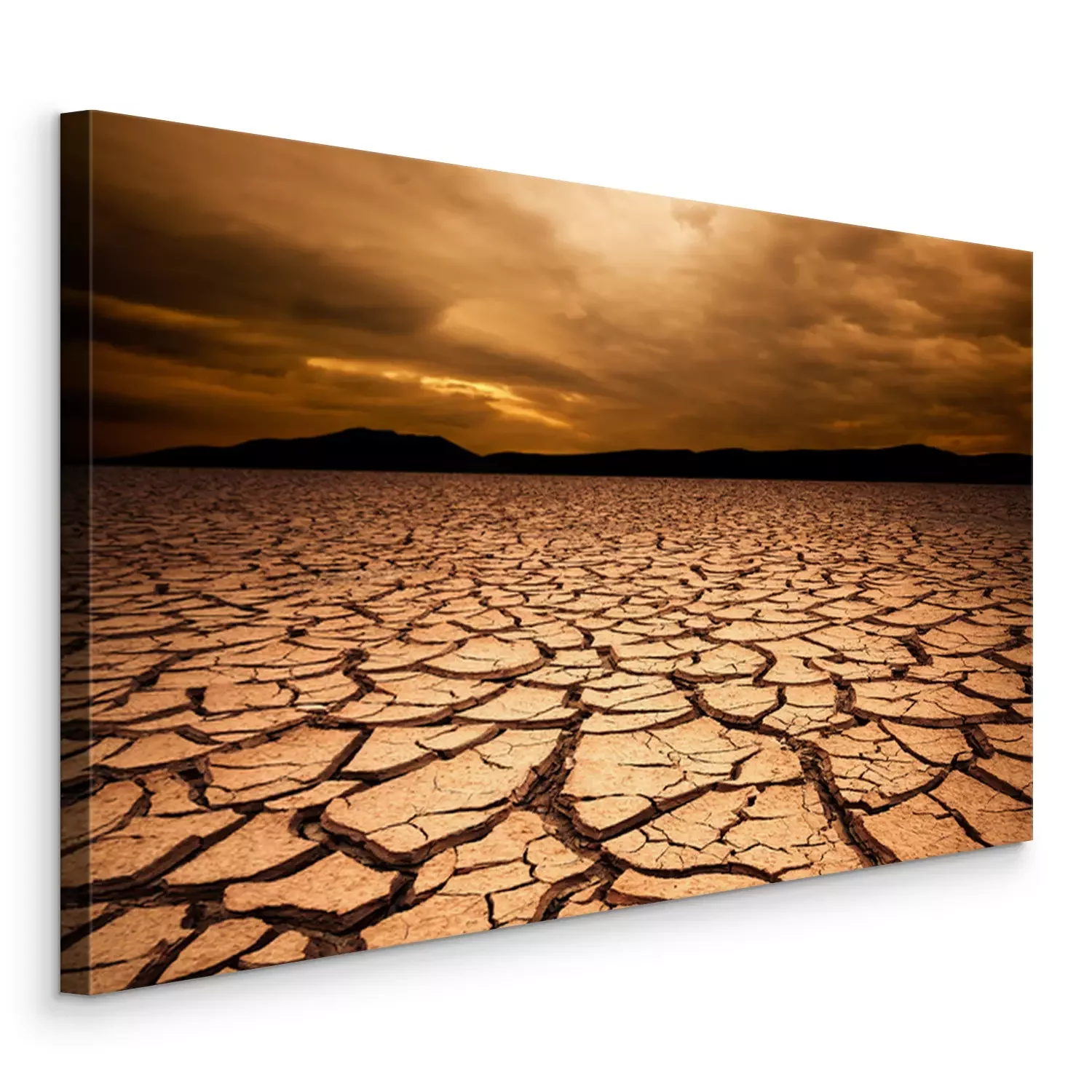 Canvas: Dramatische zonsondergang over gebarsten aarde. Woestijn landschap achtergrond.