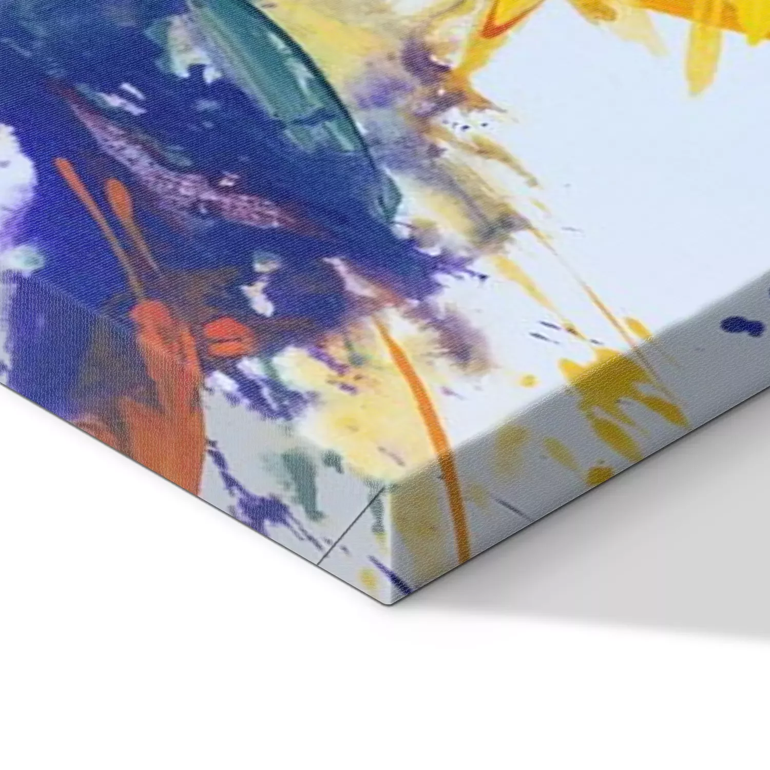 De print wordt aangebracht op hoogwaardig canvas dat op een schildersweefgetouw (spieraam) wordt gespannen. Omdat de print de zijranden bedekt, hoeft het ontwerp niet met een extra kader te worden omlijst. Wij raden ook composities aan die uit meerdere foto's bestaan en zo een coherente compositie vormen.
