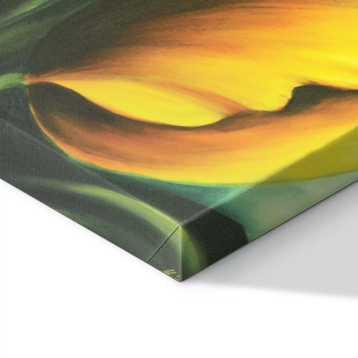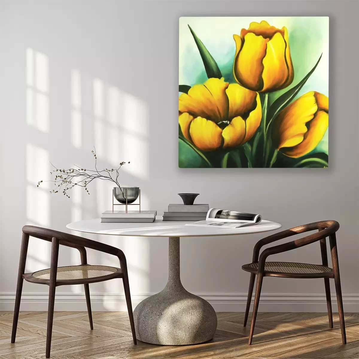 Drie gele tulpen in schilderachtige stijl op een groene achtergrond