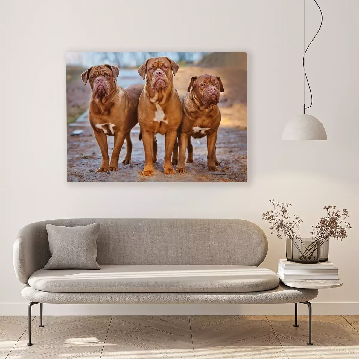 De print wordt aangebracht op hoogwaardig canvas dat op een schildersweefgetouw (spieraam) wordt gespannen. Omdat de print de zijranden bedekt, hoeft het ontwerp niet met een extra kader te worden omlijst. Wij raden ook composities aan die uit meerdere foto's bestaan en zo een coherente compositie vormen.