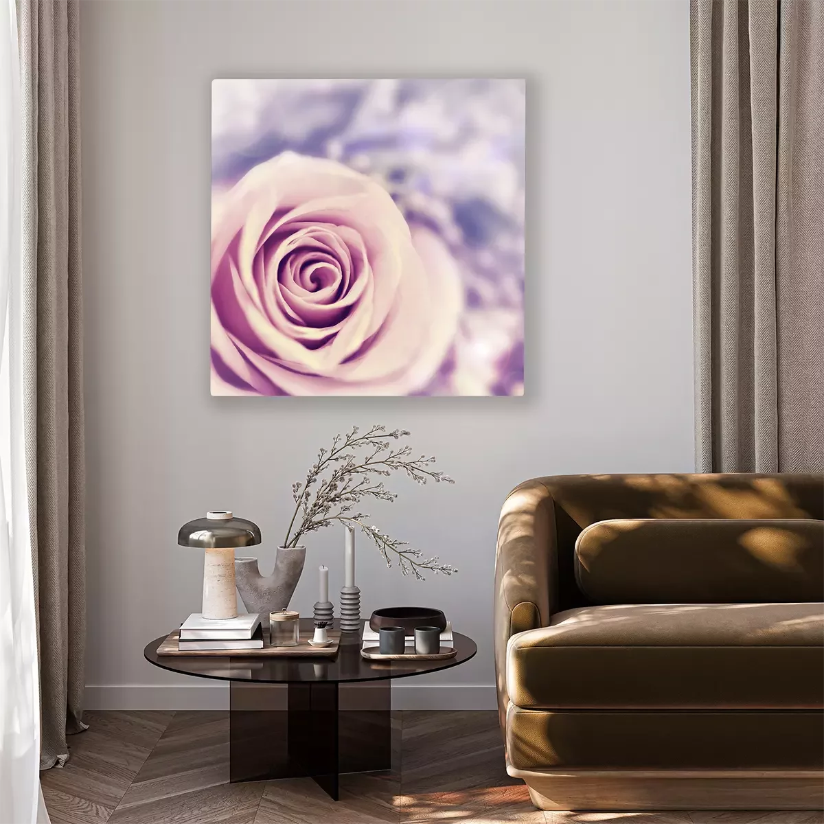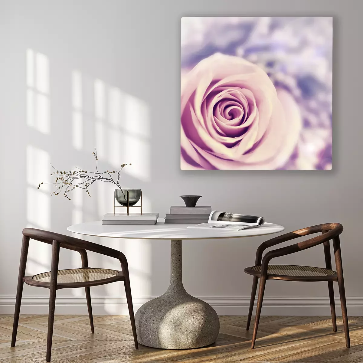 De print wordt aangebracht op hoogwaardig canvas dat op een schildersweefgetouw (spieraam) wordt gespannen. Omdat de print de zijranden bedekt, hoeft het ontwerp niet met een extra kader te worden omlijst. Wij raden ook composities aan die uit meerdere foto's bestaan en zo een coherente compositie vormen.