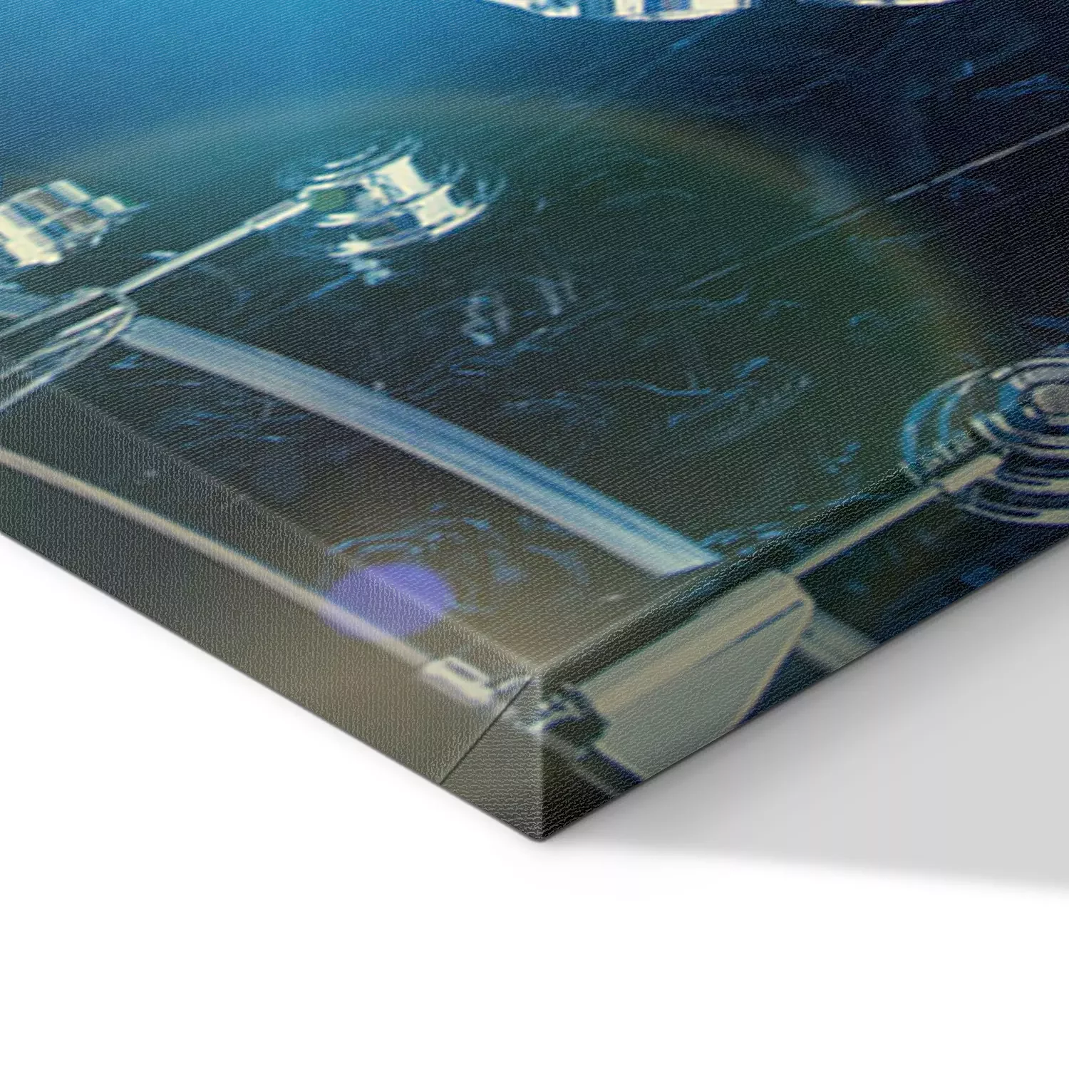De print wordt aangebracht op hoogwaardig canvas dat op een schildersweefgetouw (spieraam) wordt gespannen. Omdat de print de zijranden bedekt, hoeft het ontwerp niet met een extra kader te worden omlijst. Wij raden ook composities aan die uit meerdere foto's bestaan en zo een coherente compositie vormen.