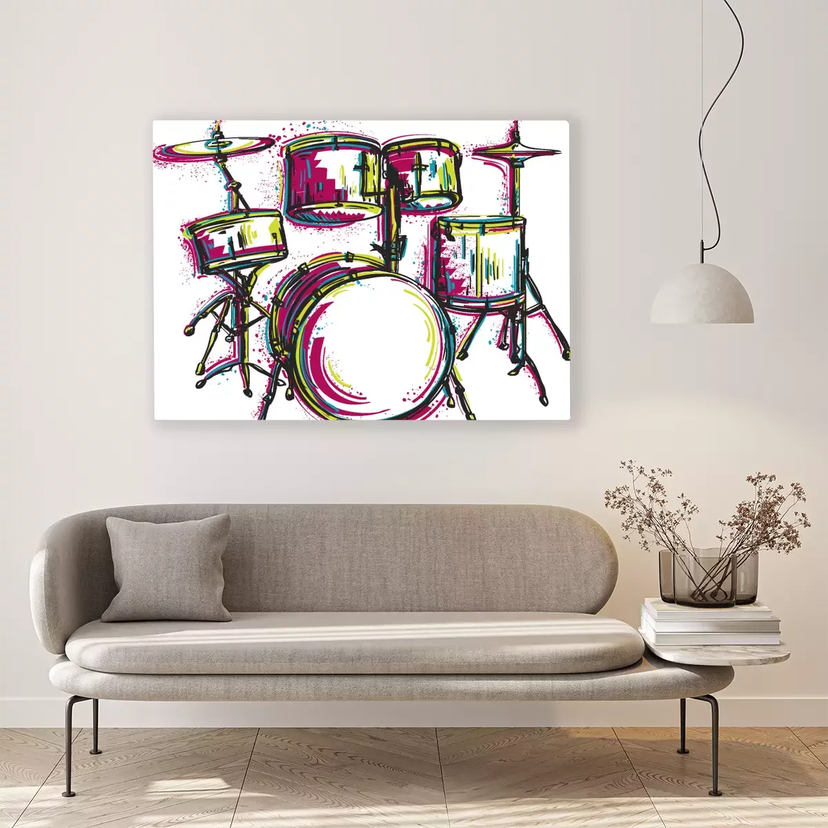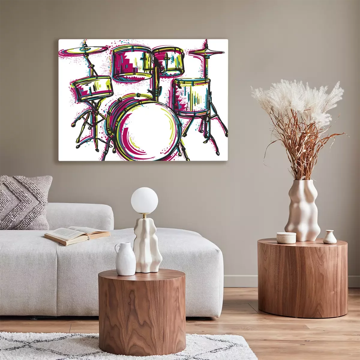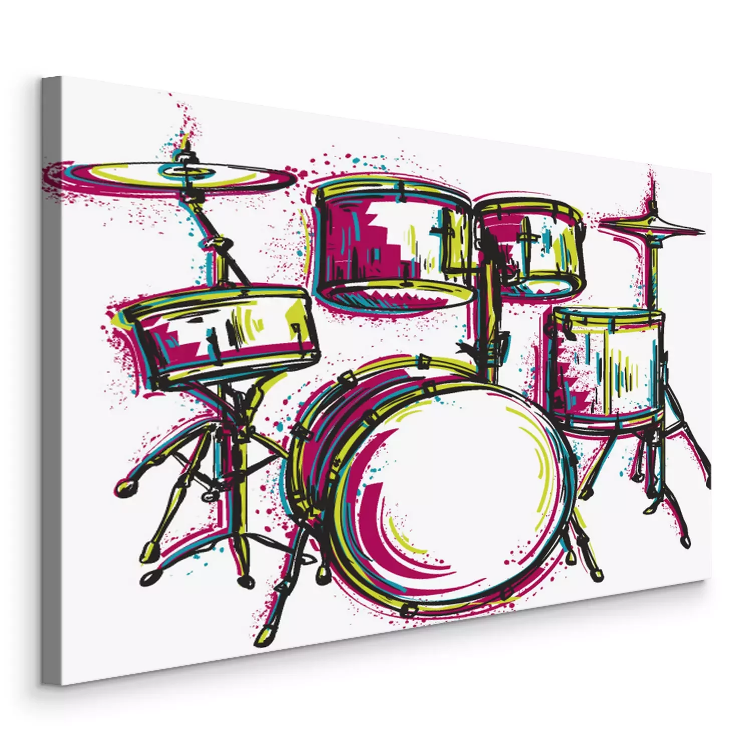 Canvas: Drumstel met spatten in aquarel stijl. Kleurrijke hand getrokken vector illustratie