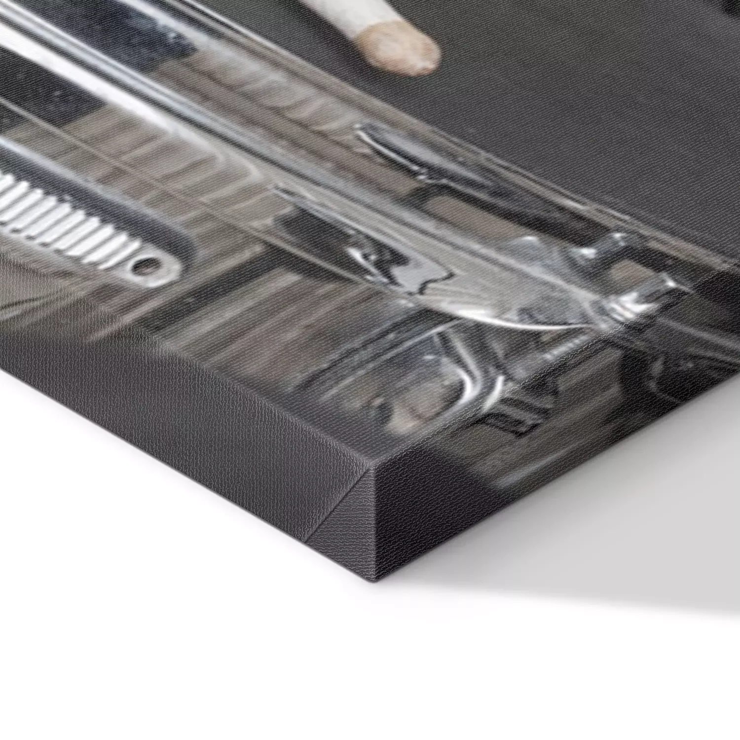 De print wordt aangebracht op hoogwaardig canvas dat op een schildersweefgetouw (spieraam) wordt gespannen. Omdat de print de zijranden bedekt, hoeft het ontwerp niet met een extra kader te worden omlijst. Wij raden ook composities aan die uit meerdere foto's bestaan en zo een coherente compositie vormen.