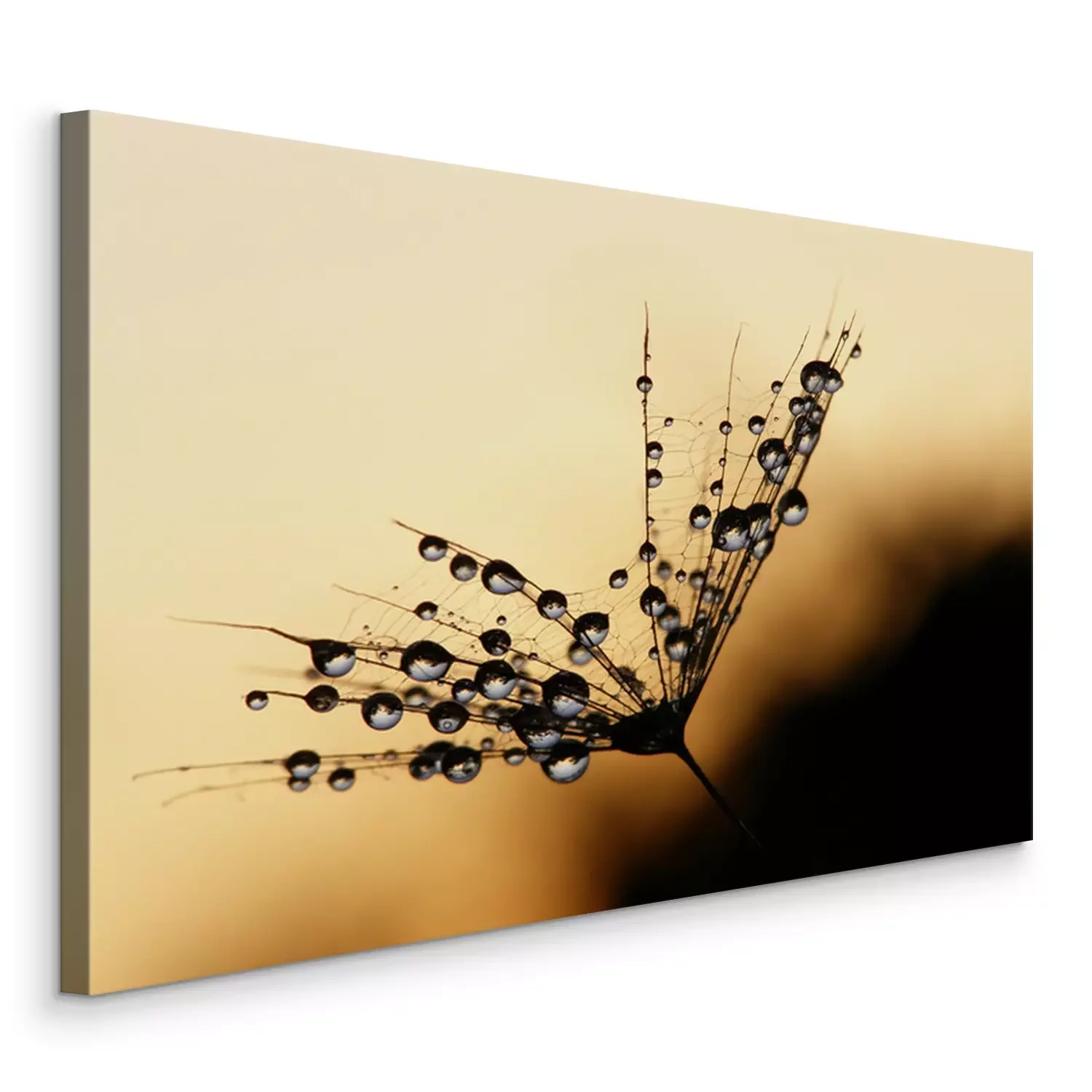 Canvas Druppels water op paardebloemen