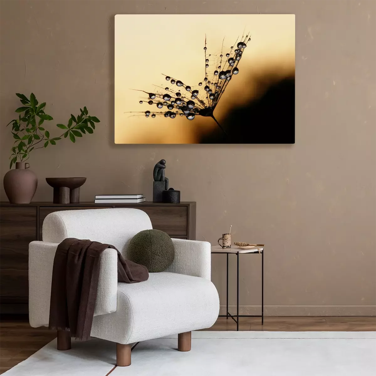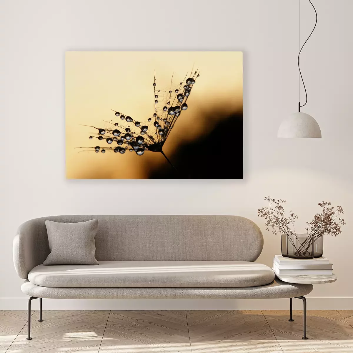 Canvas: Druppels water op paardebloemen