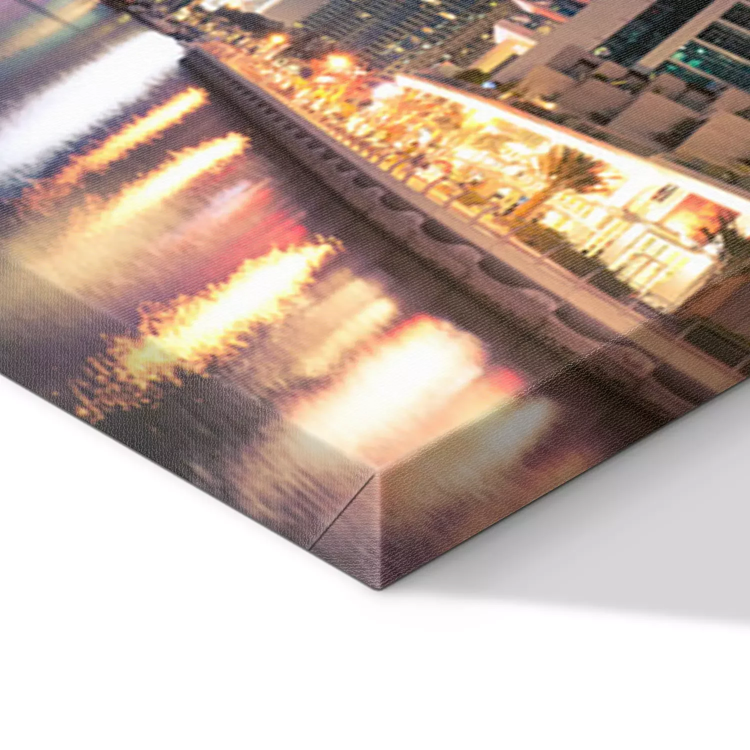 De print wordt aangebracht op hoogwaardig canvas dat op een schildersweefgetouw (spieraam) wordt gespannen. Omdat de print de zijranden bedekt, hoeft het ontwerp niet met een extra kader te worden omlijst. Wij raden ook composities aan die uit meerdere foto's bestaan en zo een coherente compositie vormen.