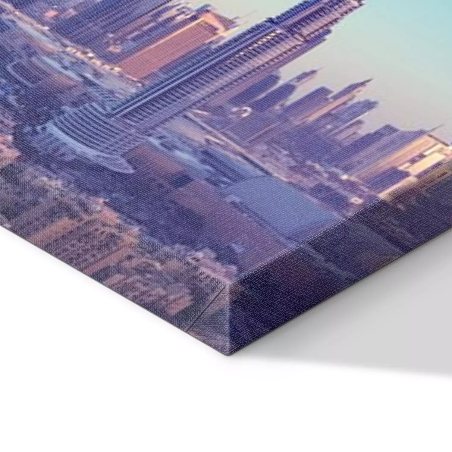 De print wordt aangebracht op hoogwaardig canvas dat op een schildersweefgetouw (spieraam) wordt gespannen. Omdat de print de zijranden bedekt, hoeft het ontwerp niet met een extra kader te worden omlijst. Wij raden ook composities aan die uit meerdere foto's bestaan en zo een coherente compositie vormen.