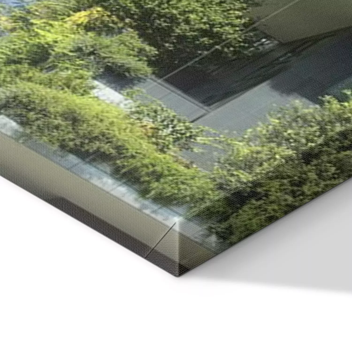 De print wordt aangebracht op hoogwaardig canvas dat op een schildersweefgetouw (spieraam) wordt gespannen. Omdat de print de zijranden bedekt, hoeft het ontwerp niet met een extra kader te worden omlijst. Wij raden ook composities aan die uit meerdere foto's bestaan en zo een coherente compositie vormen.