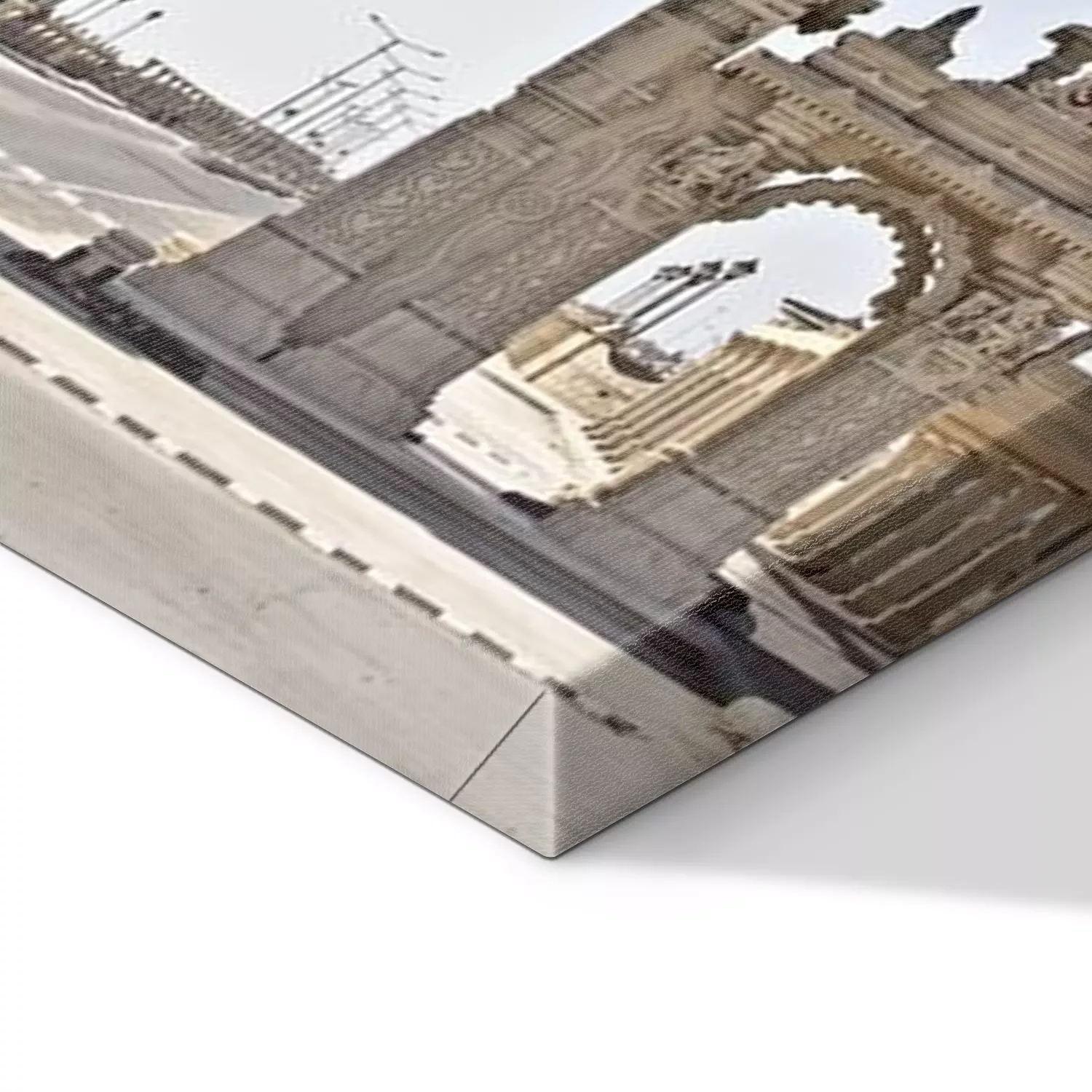 De print wordt aangebracht op hoogwaardig canvas dat op een schildersweefgetouw (spieraam) wordt gespannen. Omdat de print de zijranden bedekt, hoeft het ontwerp niet met een extra kader te worden omlijst. Wij raden ook composities aan die uit meerdere foto's bestaan en zo een coherente compositie vormen.