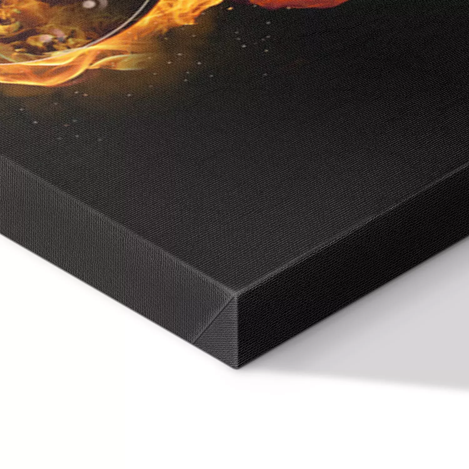 De print wordt aangebracht op hoogwaardig canvas dat op een schildersweefgetouw (spieraam) wordt gespannen. Omdat de print de zijranden bedekt, hoeft het ontwerp niet met een extra kader te worden omlijst. Wij raden ook composities aan die uit meerdere foto's bestaan en zo een coherente compositie vormen.