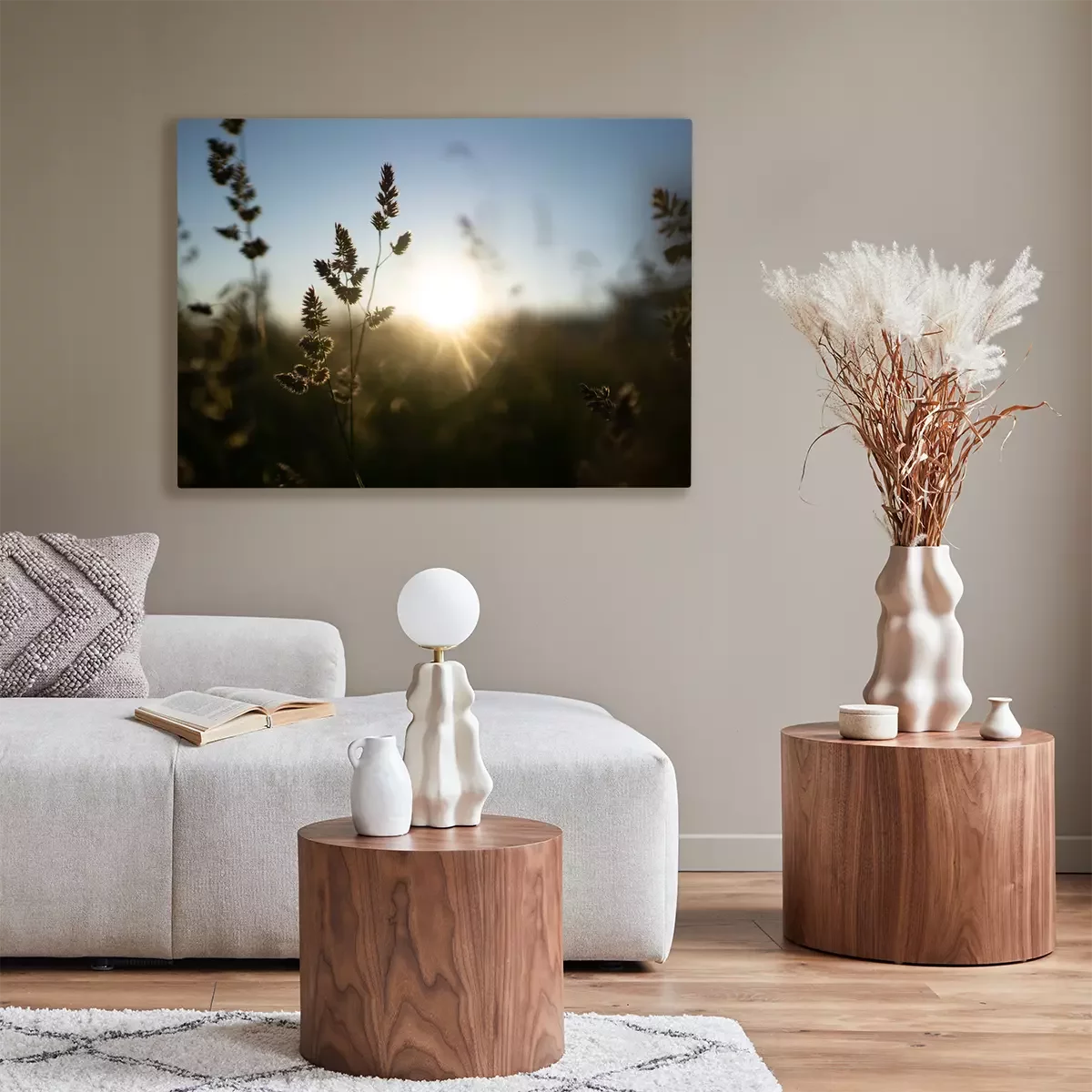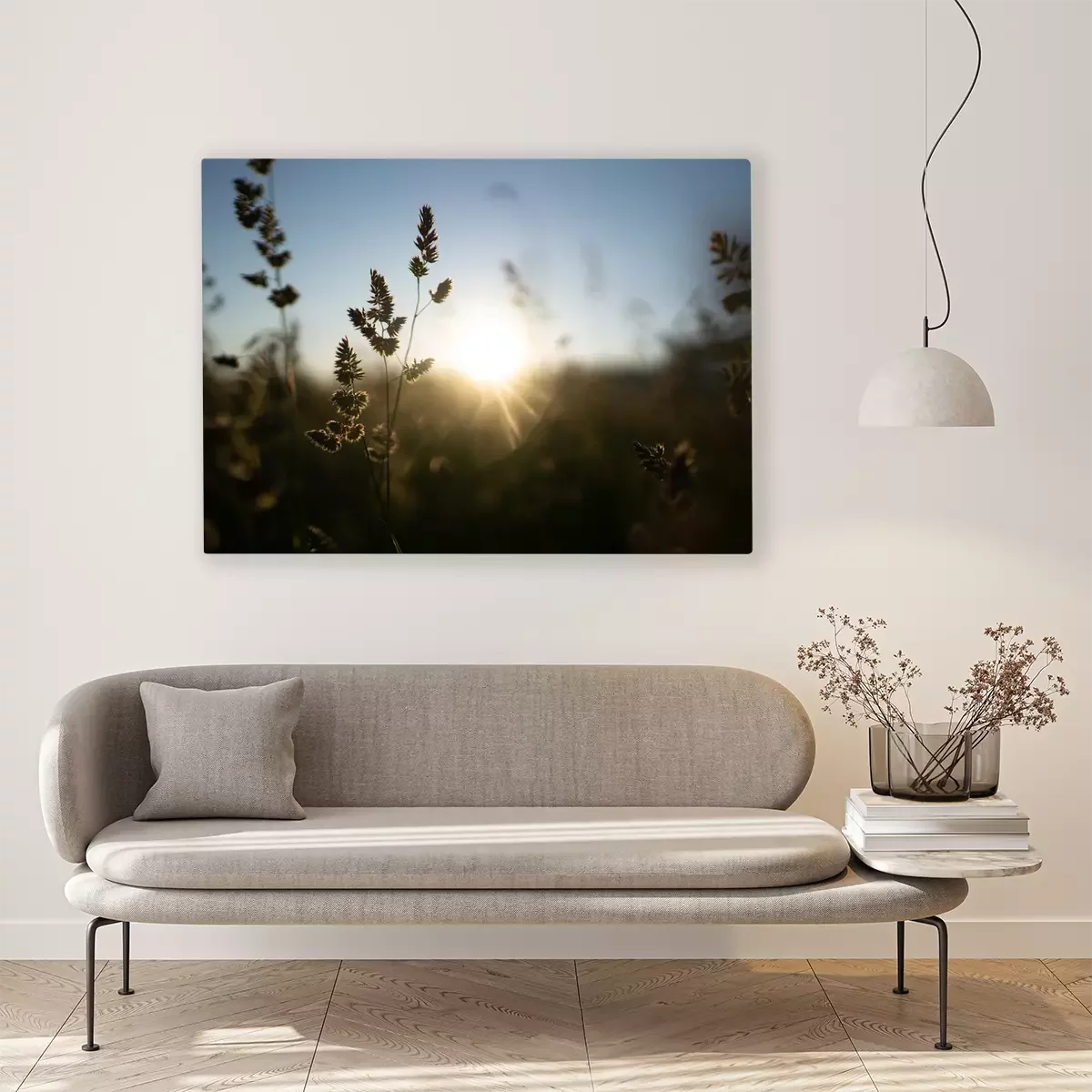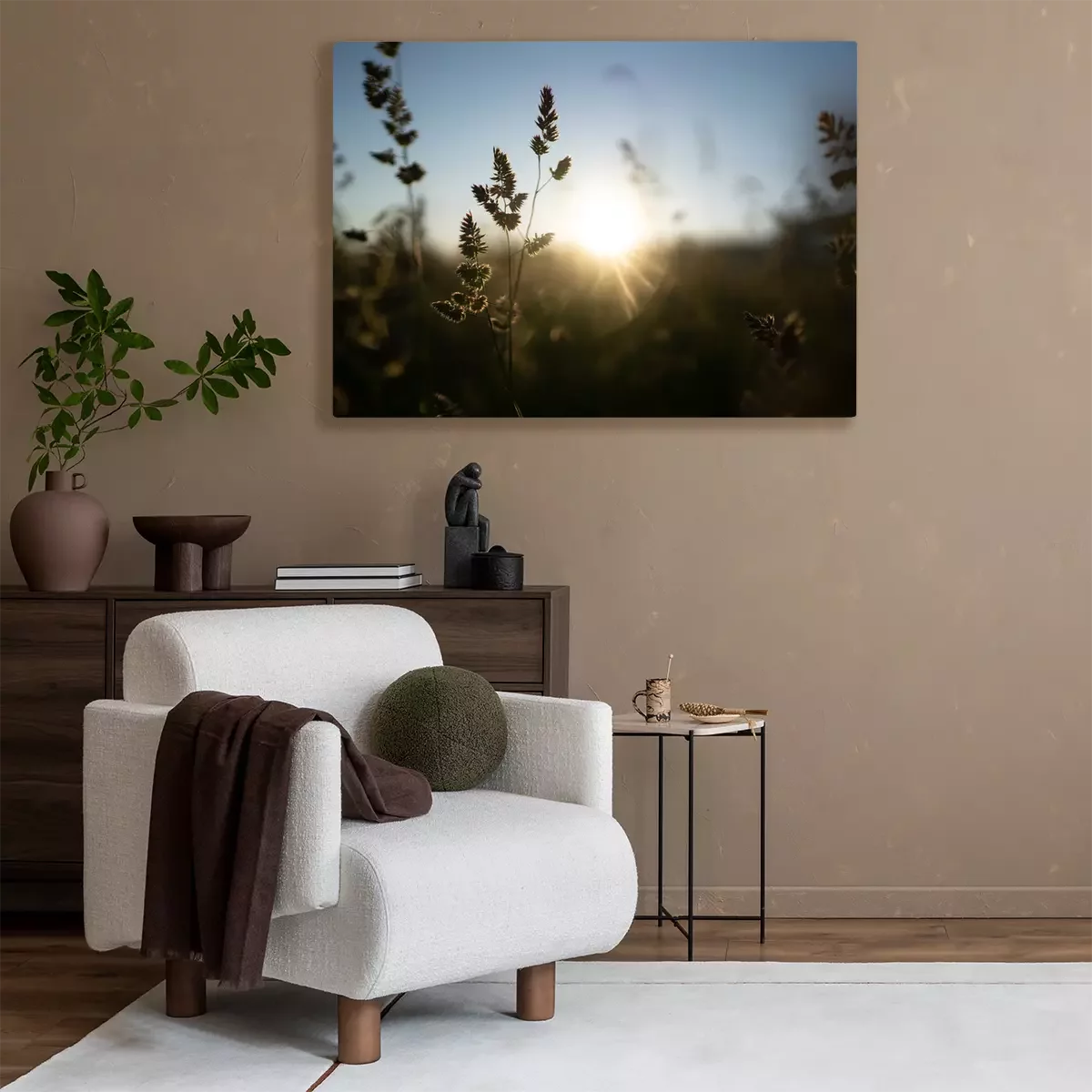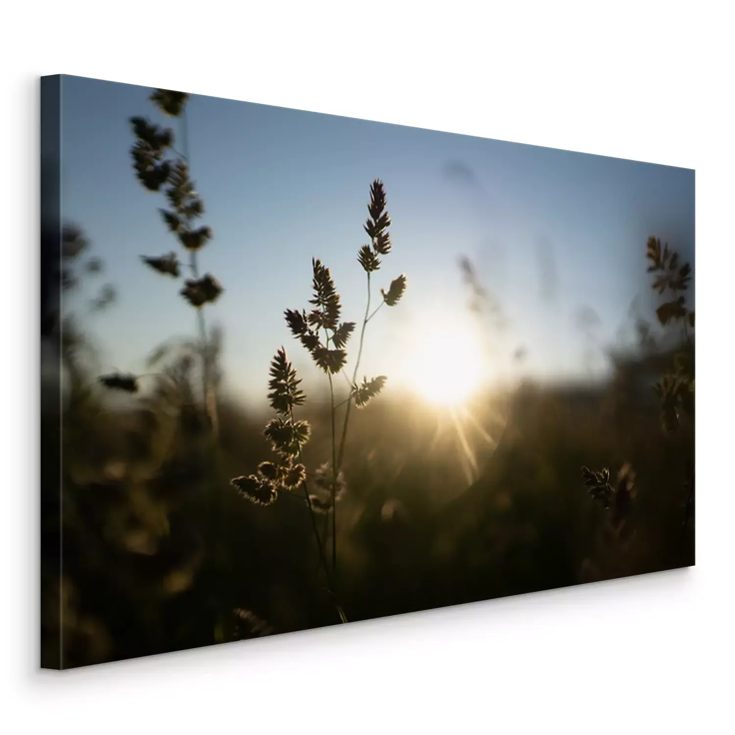 Canvas: ears of grass at sunset, meadow with grass in autumn