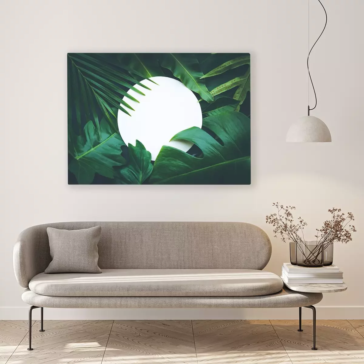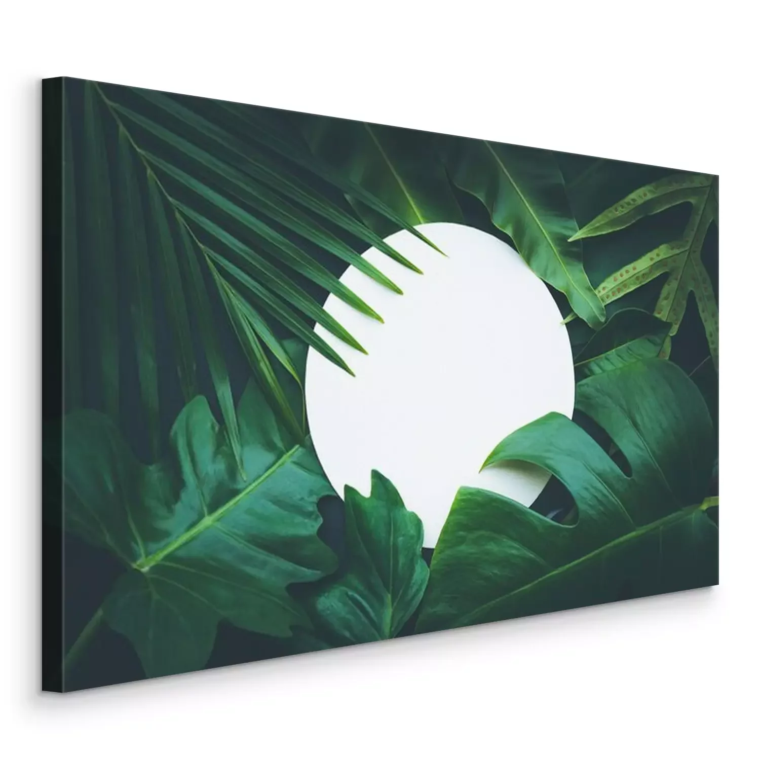 Canvas Echte bladeren met witte kopie ruimte achtergrond. Tropische botanische natuur concept ontwerp.