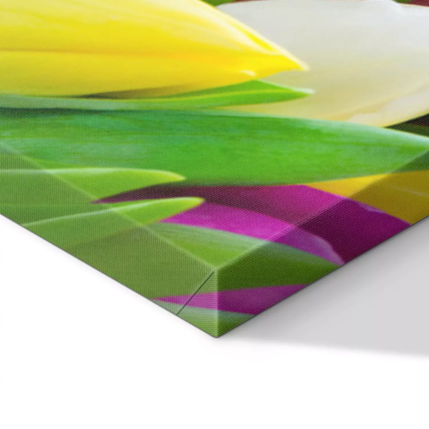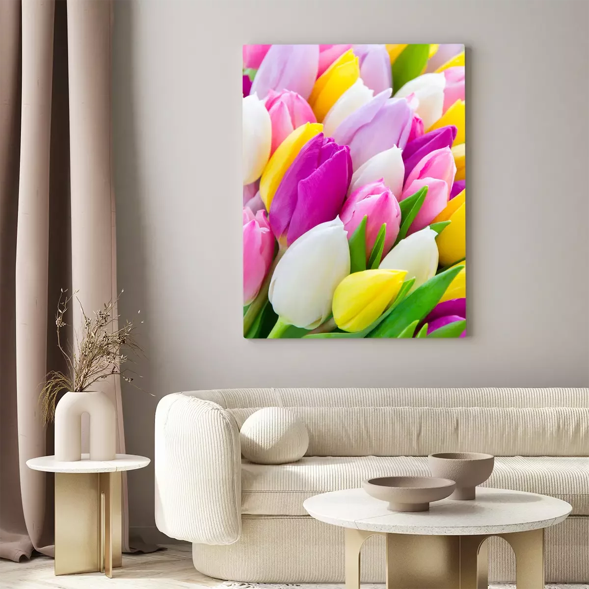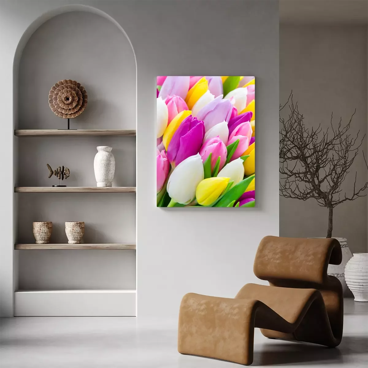 De print wordt aangebracht op hoogwaardig canvas dat op een schildersweefgetouw (spieraam) wordt gespannen. Omdat de print de zijranden bedekt, hoeft het ontwerp niet met een extra kader te worden omlijst. Wij raden ook composities aan die uit meerdere foto's bestaan en zo een coherente compositie vormen.