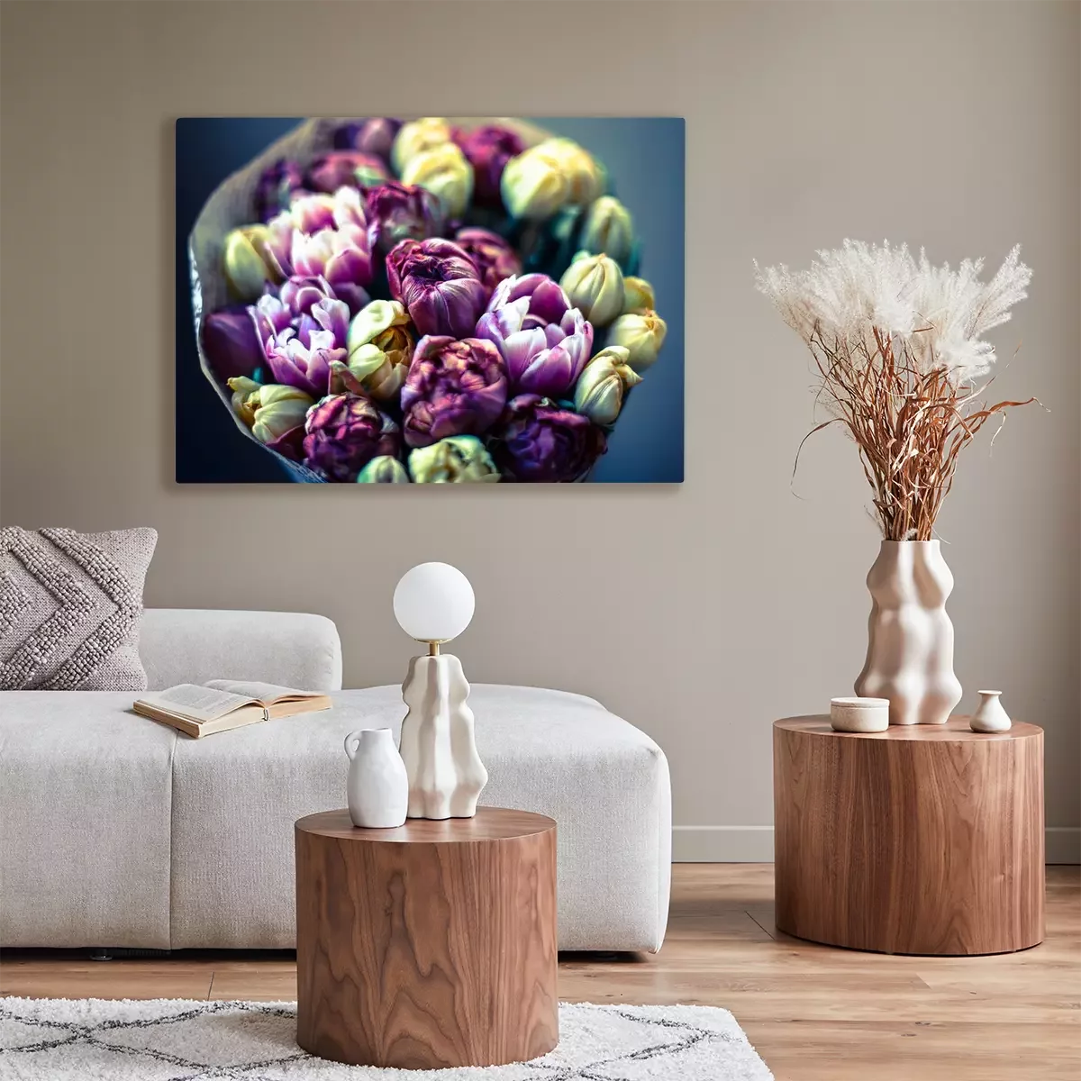 Canvas: Een armvol veelkleurige tulpen