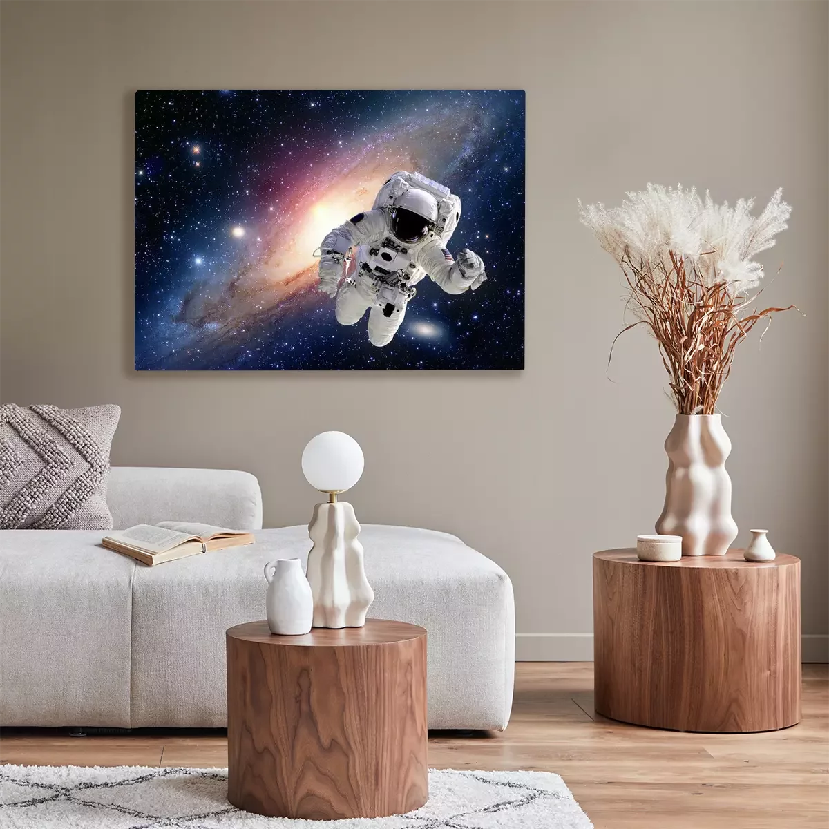 Canvas: Een astronaut vliegt door de ruimte tegen een achtergrond van sterren