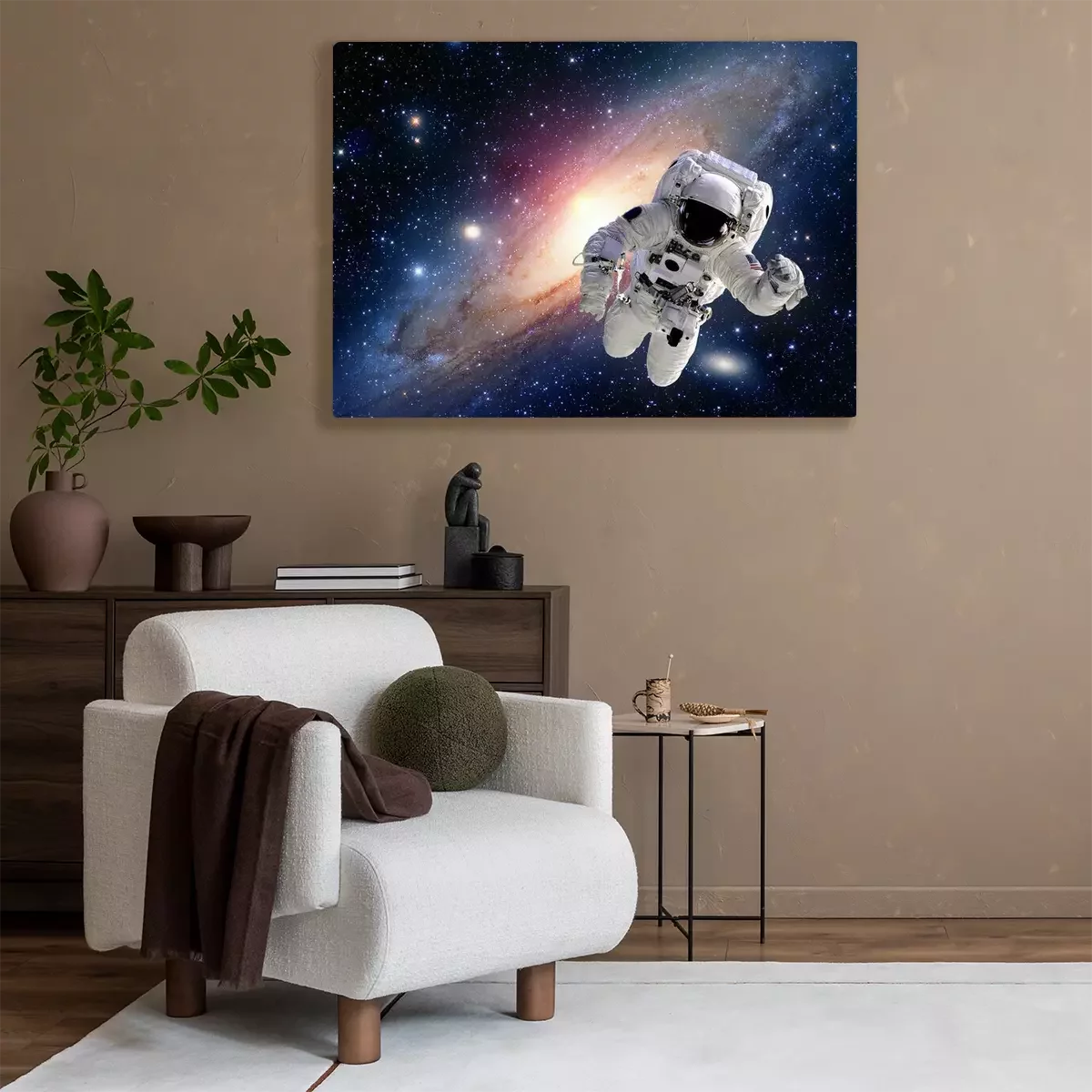 Canvas Een astronaut vliegt door de ruimte tegen een achtergrond van sterren