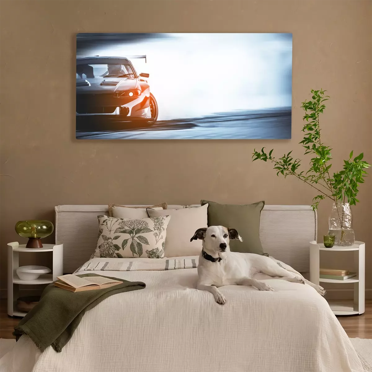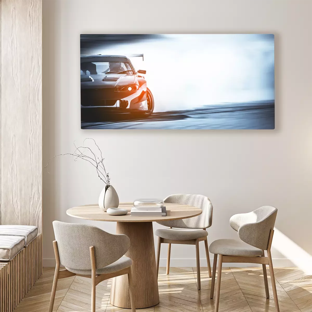 Canvas Een auto in rookwolken