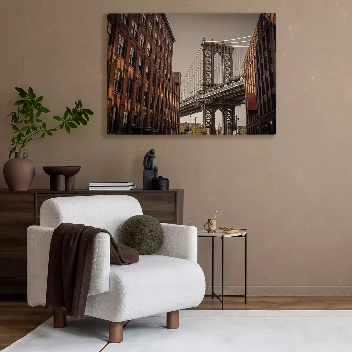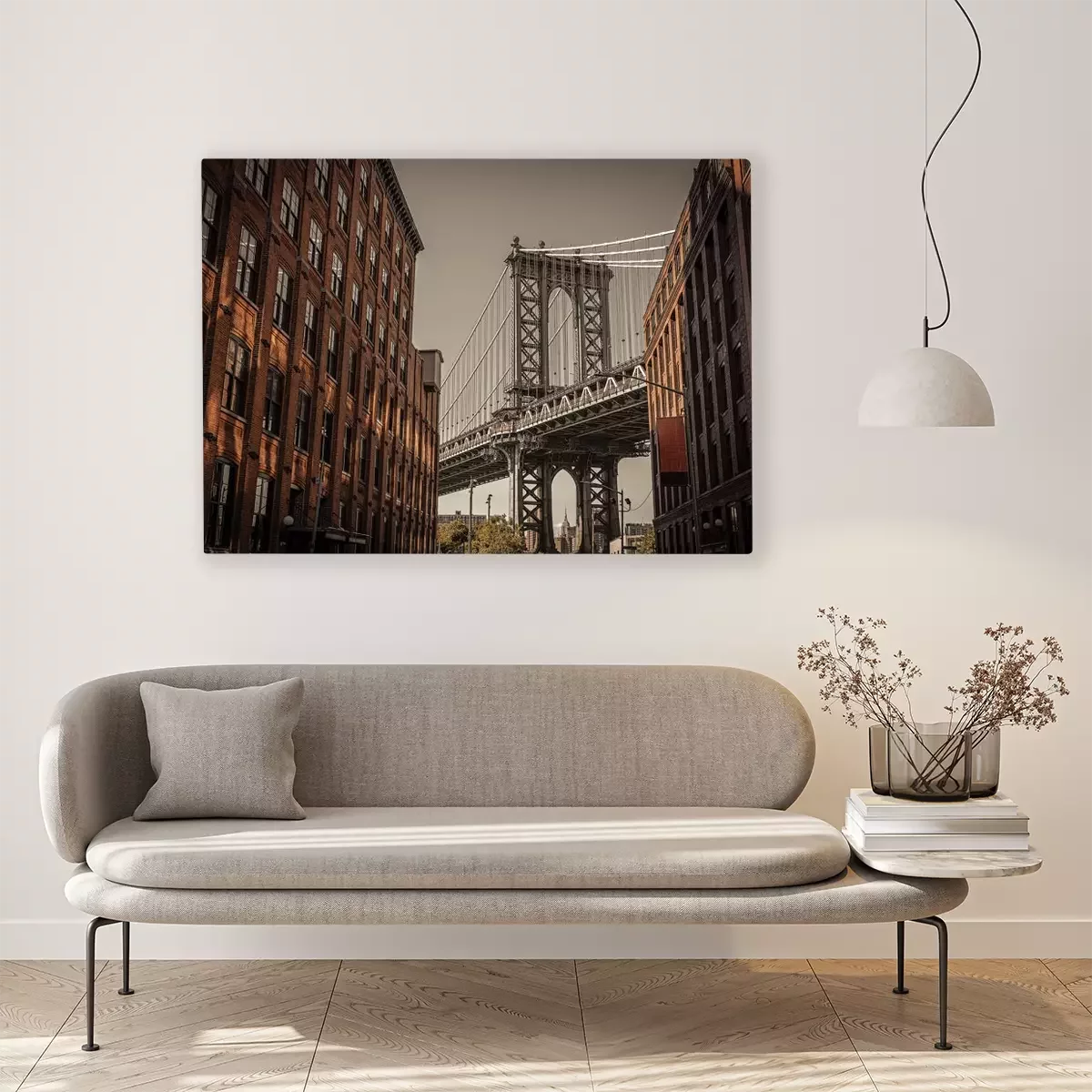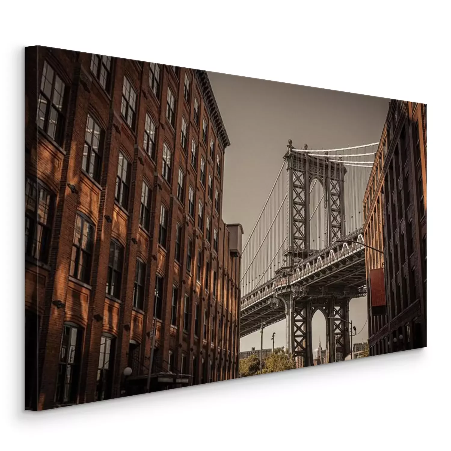 Een bakstenen gebouw met uitzicht op de brug