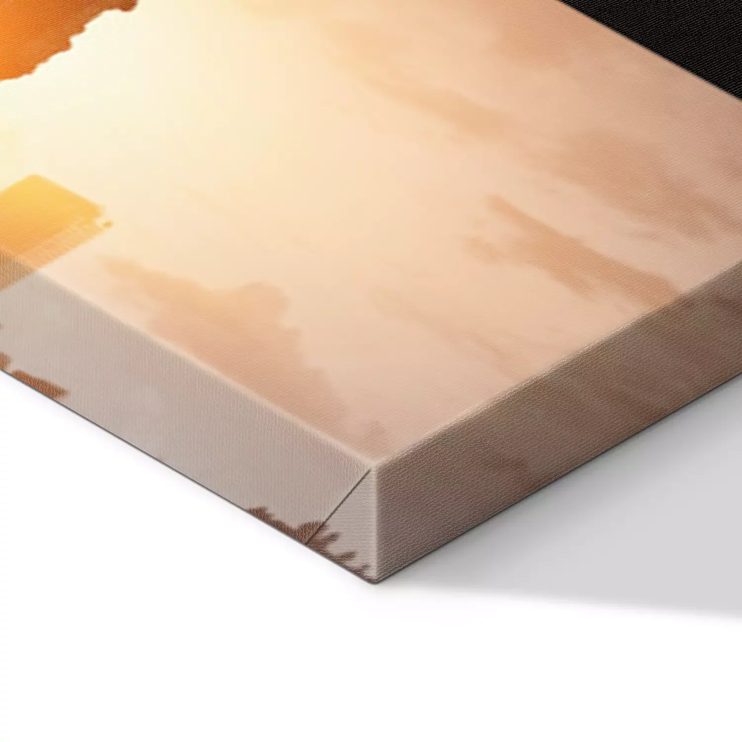 De print wordt aangebracht op hoogwaardig canvas dat op een schildersweefgetouw (spieraam) wordt gespannen. Omdat de print de zijranden bedekt, hoeft het ontwerp niet met een extra kader te worden omlijst. Wij raden ook composities aan die uit meerdere foto's bestaan en zo een coherente compositie vormen.
