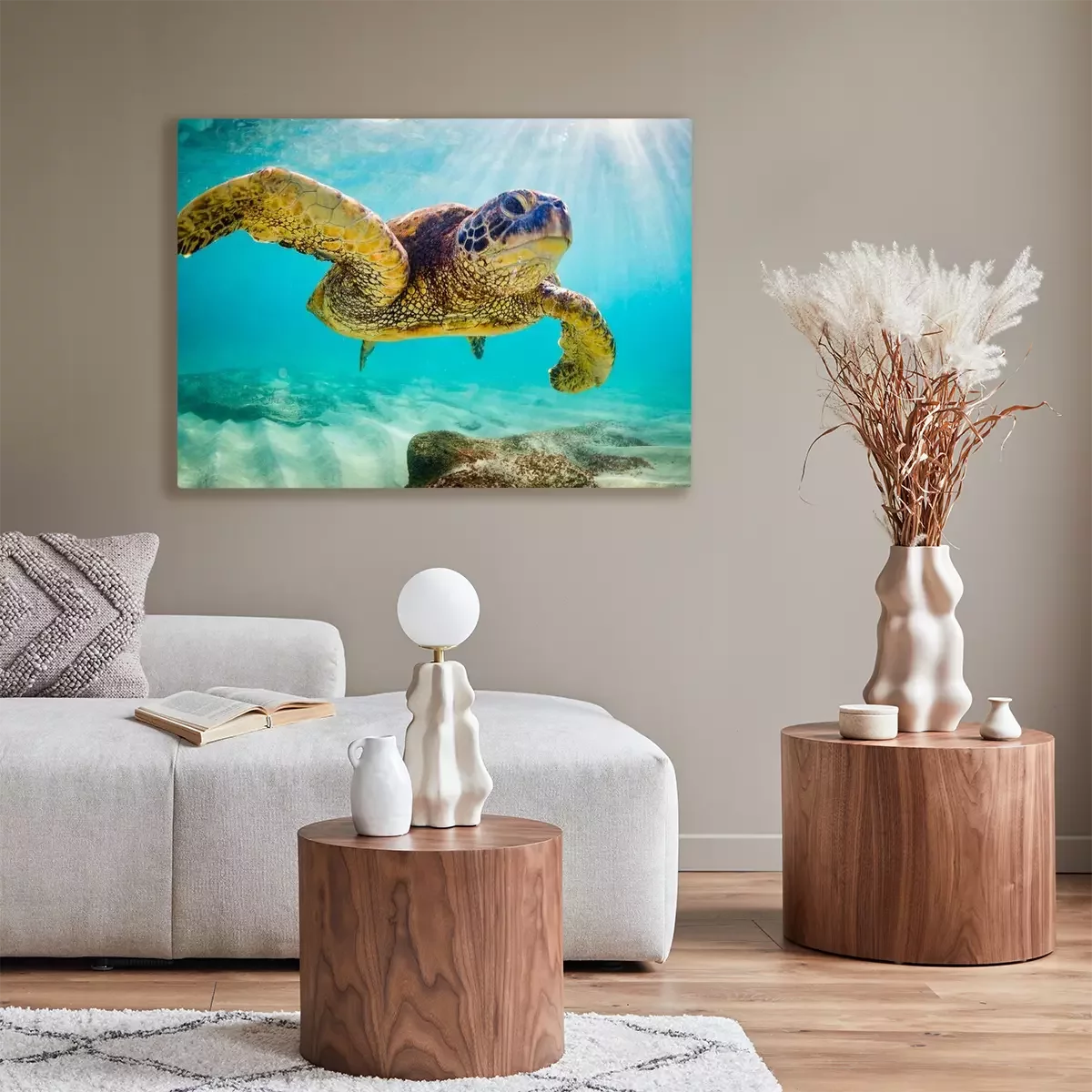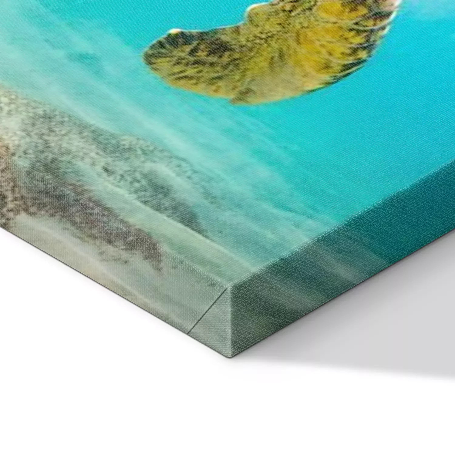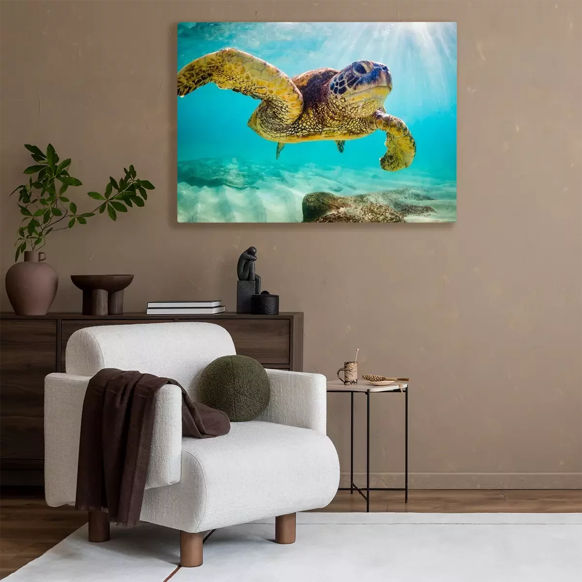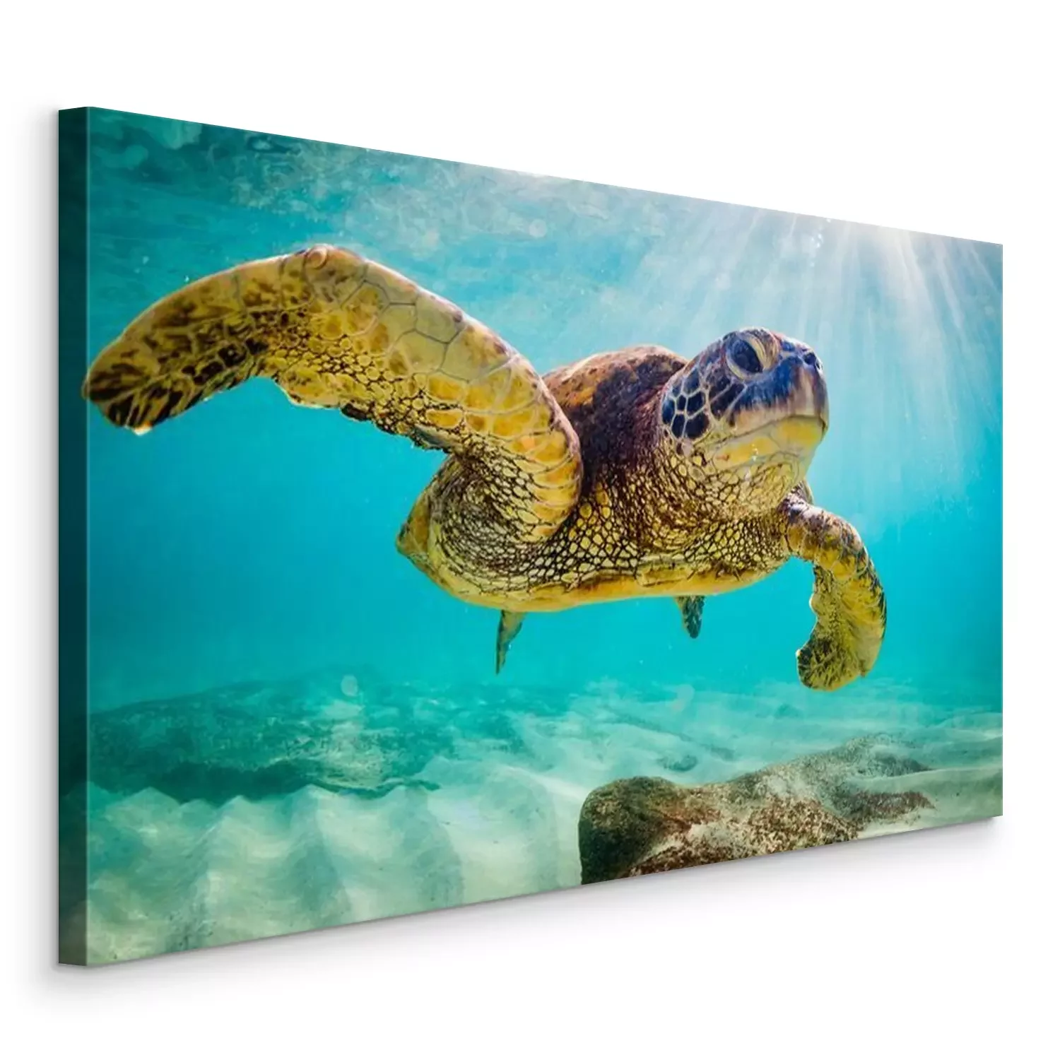 Canvas Een bedreigde Hawaiian Green Sea Turtle cruises in het warme water van de Stille Oceaan in Hawaï.