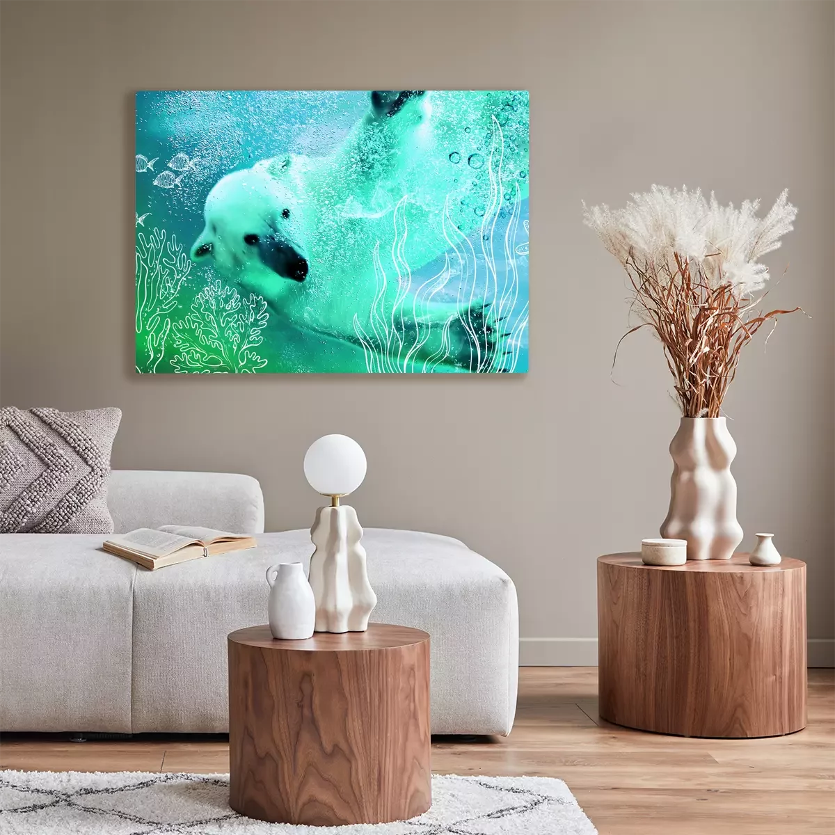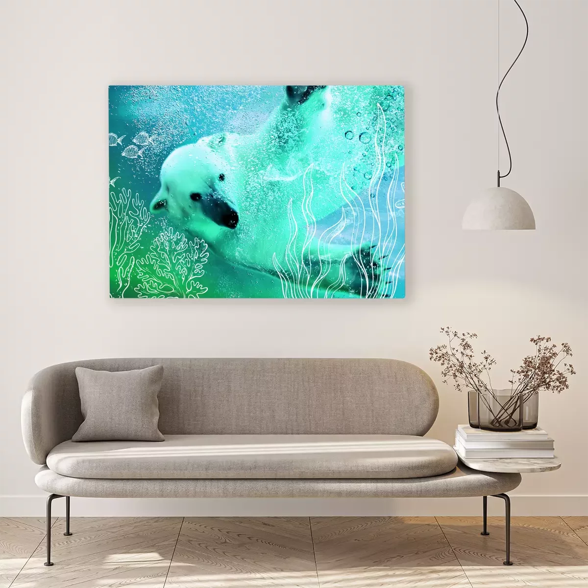 Een beer die op de golven van het noordpoolgebied drijft