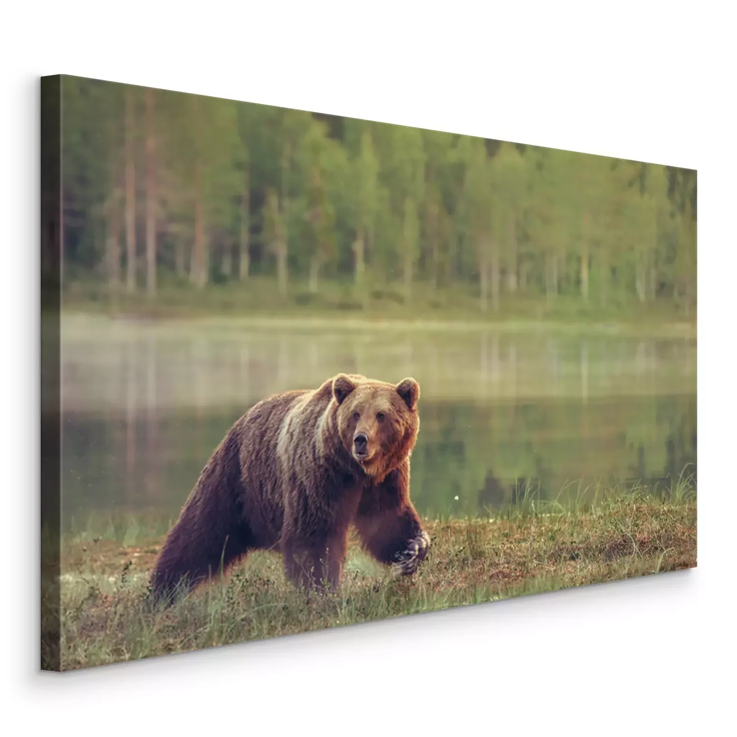 Canvas: Een beer tegen de achtergrond van een meer en een boslandschap