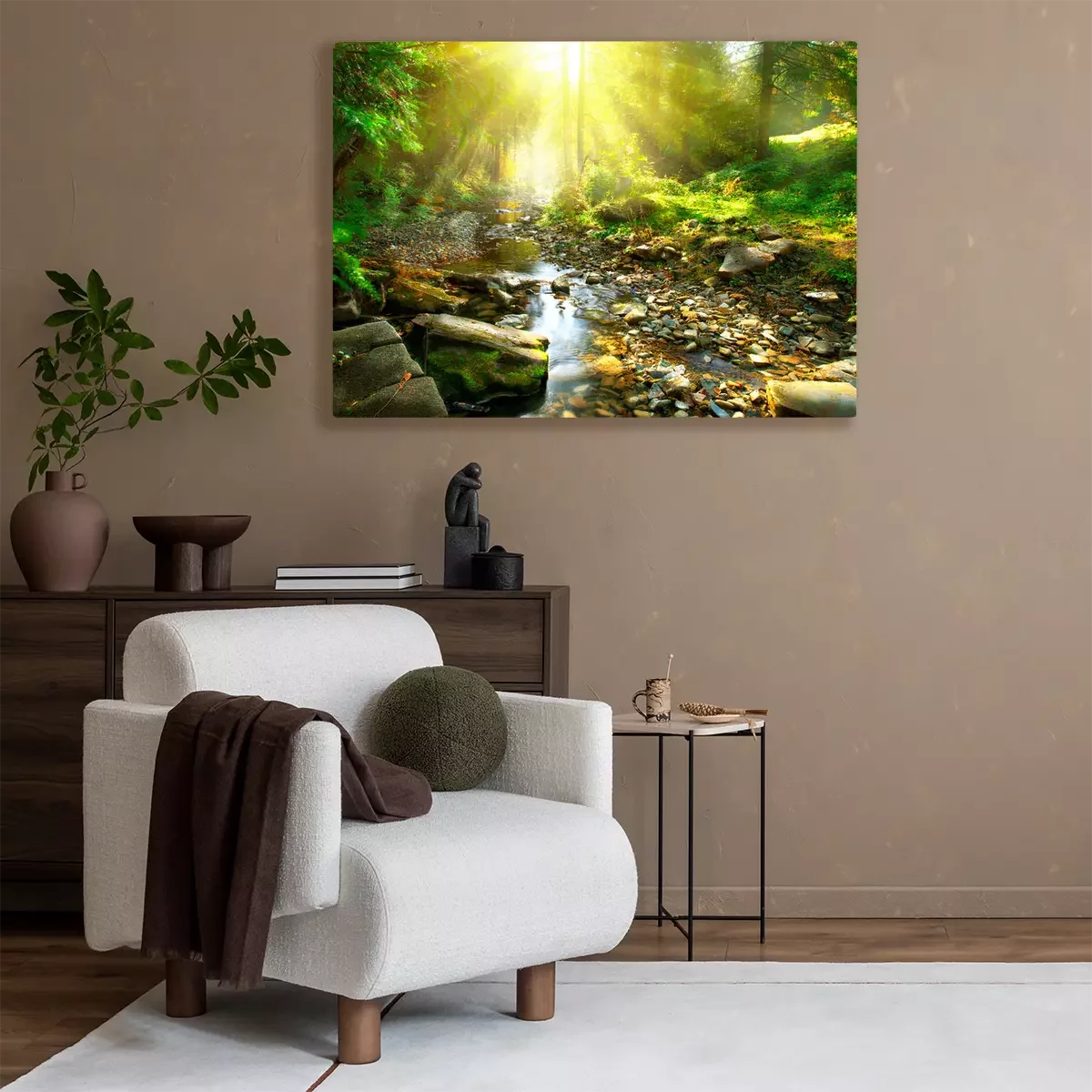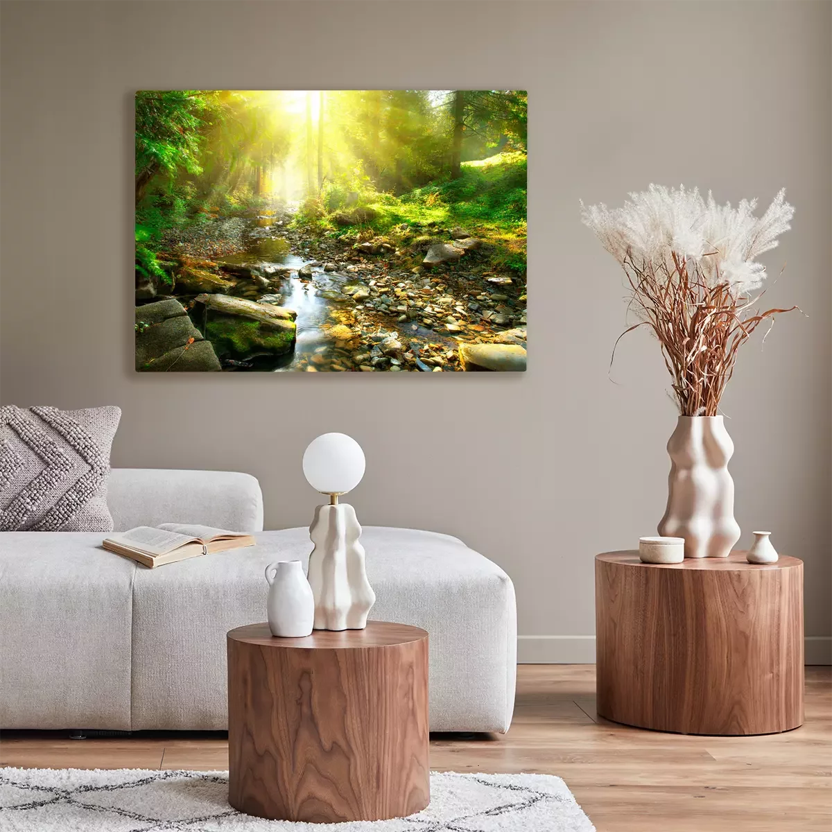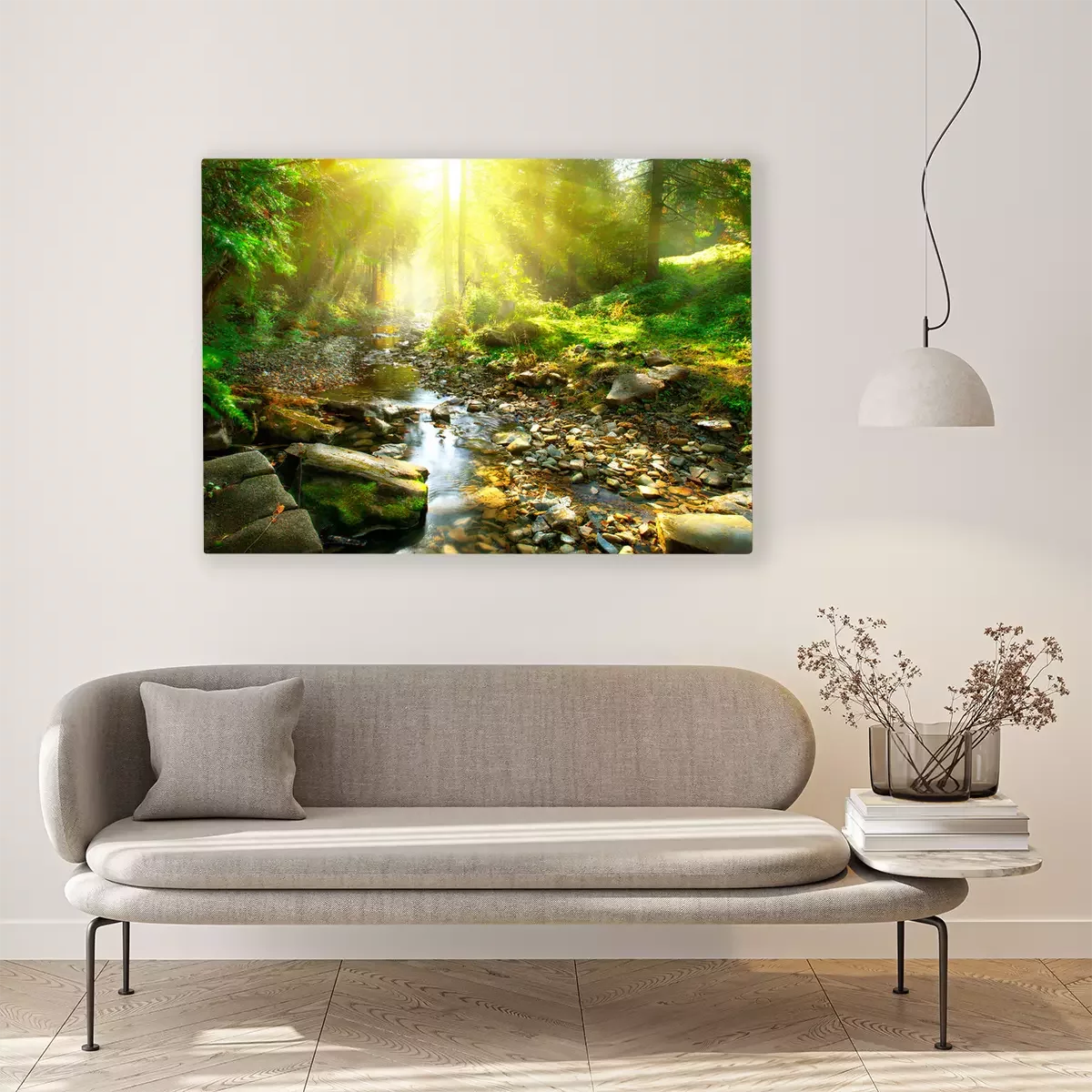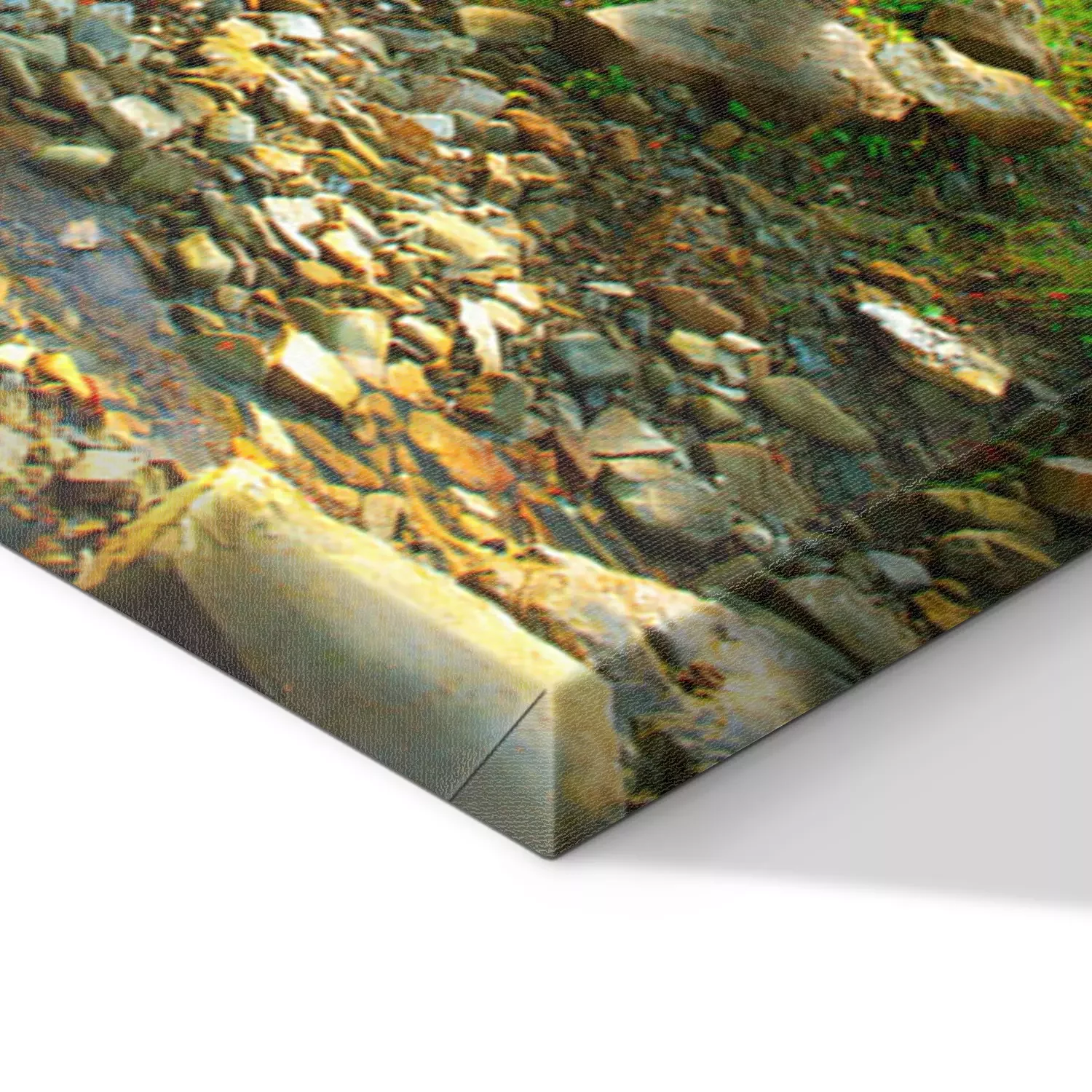 De print wordt aangebracht op hoogwaardig canvas dat op een schildersweefgetouw (spieraam) wordt gespannen. Omdat de print de zijranden bedekt, hoeft het ontwerp niet met een extra kader te worden omlijst. Wij raden ook composities aan die uit meerdere foto's bestaan en zo een coherente compositie vormen.