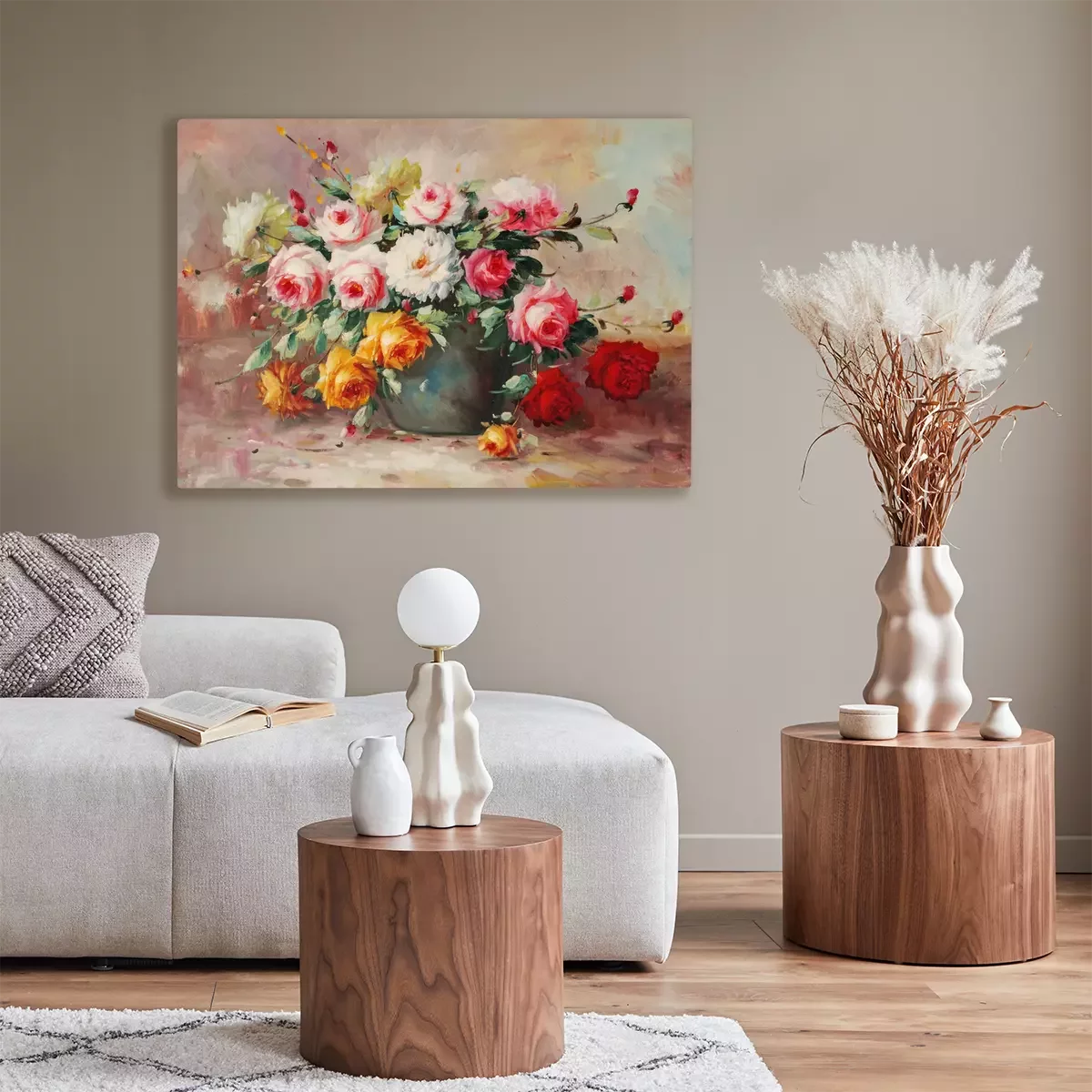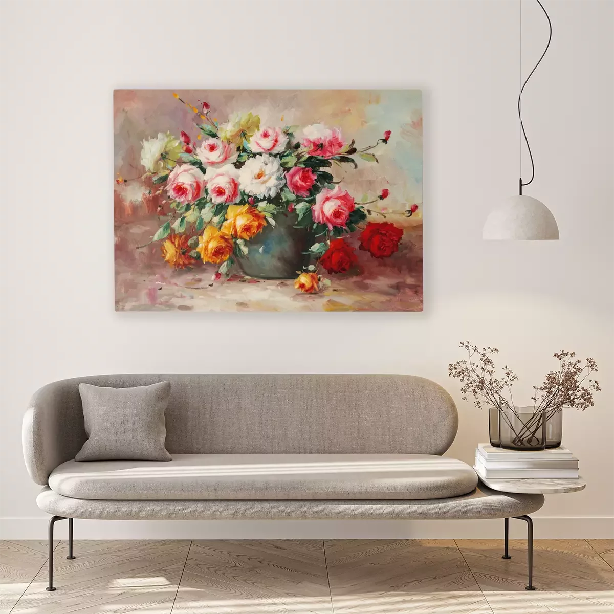 De print wordt aangebracht op hoogwaardig canvas dat op een schildersweefgetouw (spieraam) wordt gespannen. Omdat de print de zijranden bedekt, hoeft het ontwerp niet met een extra kader te worden omlijst. Wij raden ook composities aan die uit meerdere foto's bestaan en zo een coherente compositie vormen.