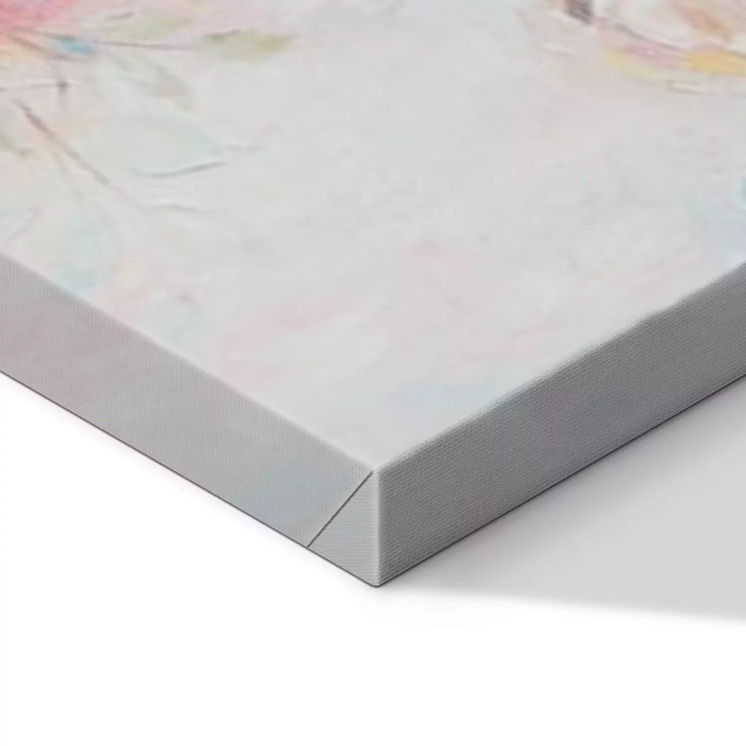 De print wordt aangebracht op hoogwaardig canvas dat op een schildersweefgetouw (spieraam) wordt gespannen. Omdat de print de zijranden bedekt, hoeft het ontwerp niet met een extra kader te worden omlijst. Wij raden ook composities aan die uit meerdere foto's bestaan en zo een coherente compositie vormen.