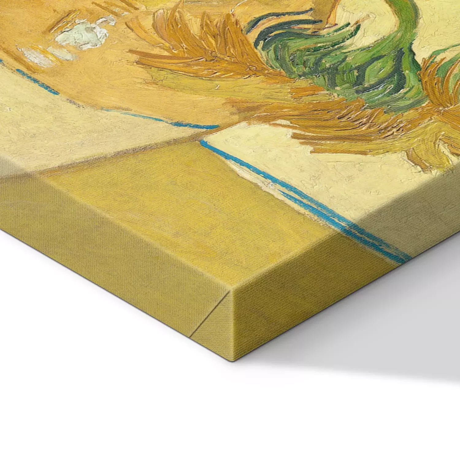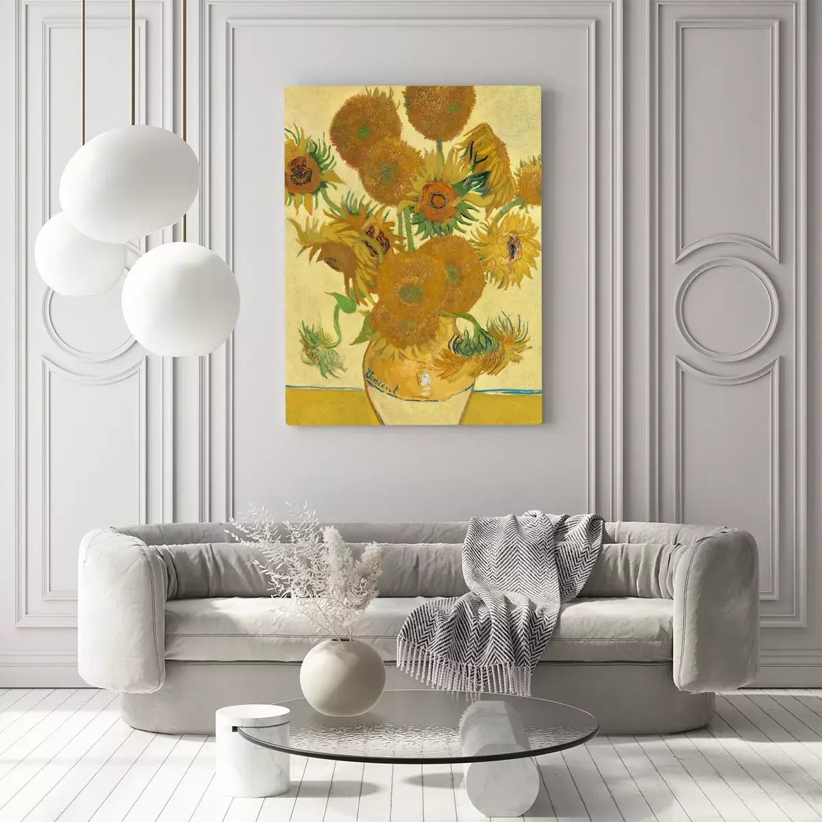 Een boeket zonnebloemen in een retro porseleinen vaas