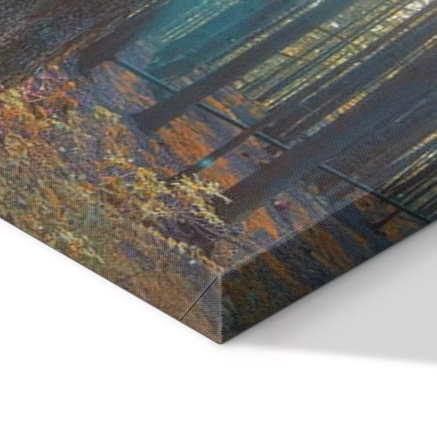 De print wordt aangebracht op hoogwaardig canvas dat op een schildersweefgetouw (spieraam) wordt gespannen. Omdat de print de zijranden bedekt, hoeft het ontwerp niet met een extra kader te worden omlijst. Wij raden ook composities aan die uit meerdere foto's bestaan en zo een coherente compositie vormen.