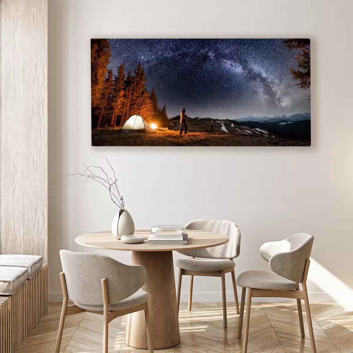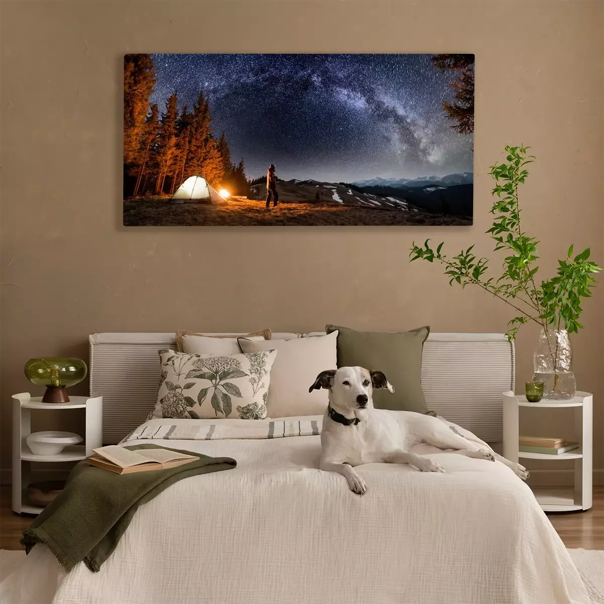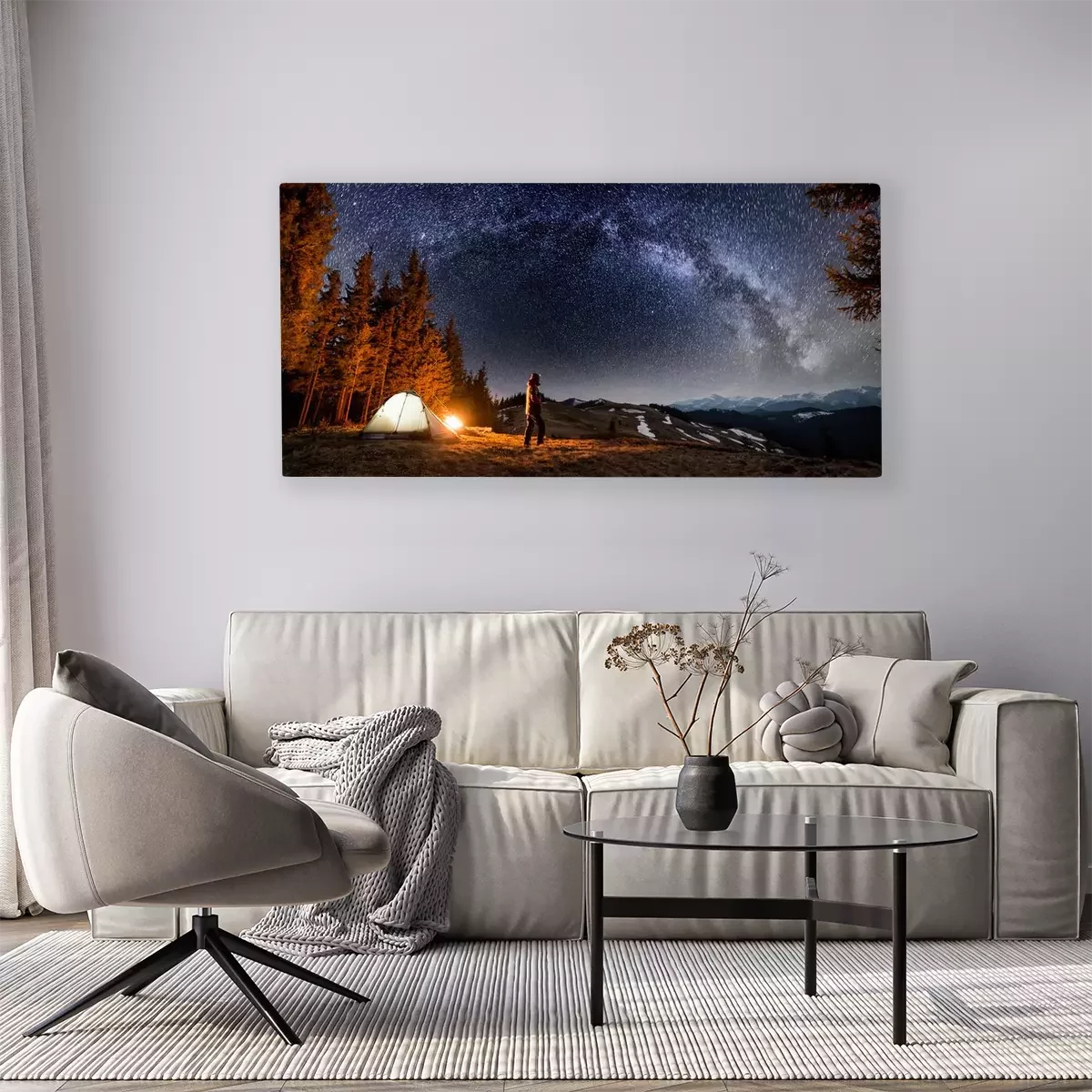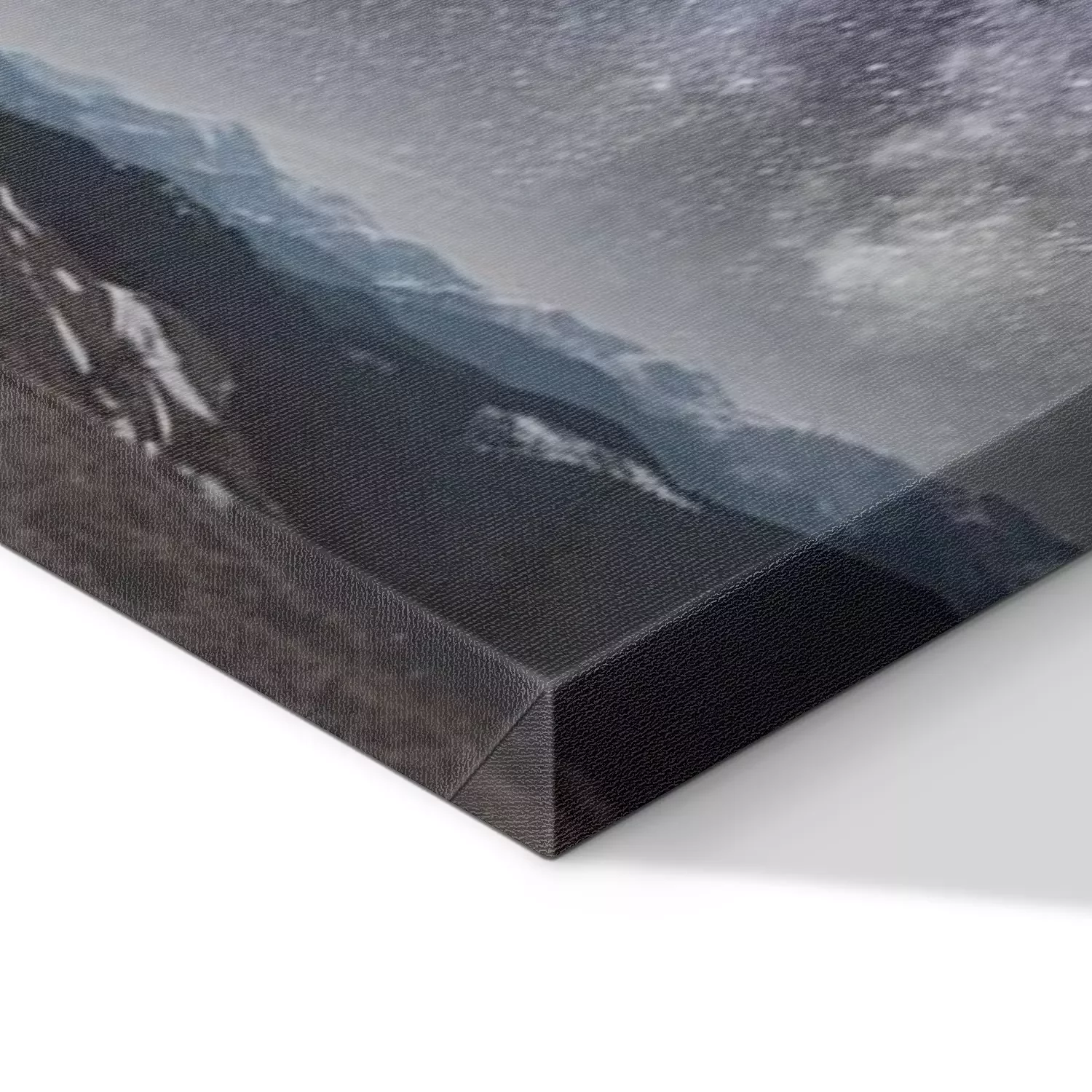 De print wordt aangebracht op hoogwaardig canvas dat op een schildersweefgetouw (spieraam) wordt gespannen. Omdat de print de zijranden bedekt, hoeft het ontwerp niet met een extra kader te worden omlijst. Wij raden ook composities aan die uit meerdere foto's bestaan en zo een coherente compositie vormen.