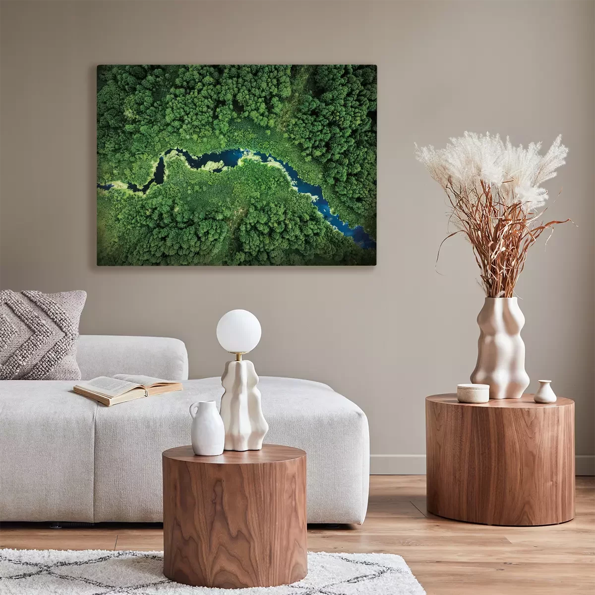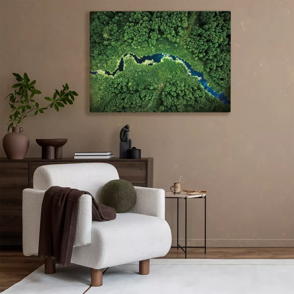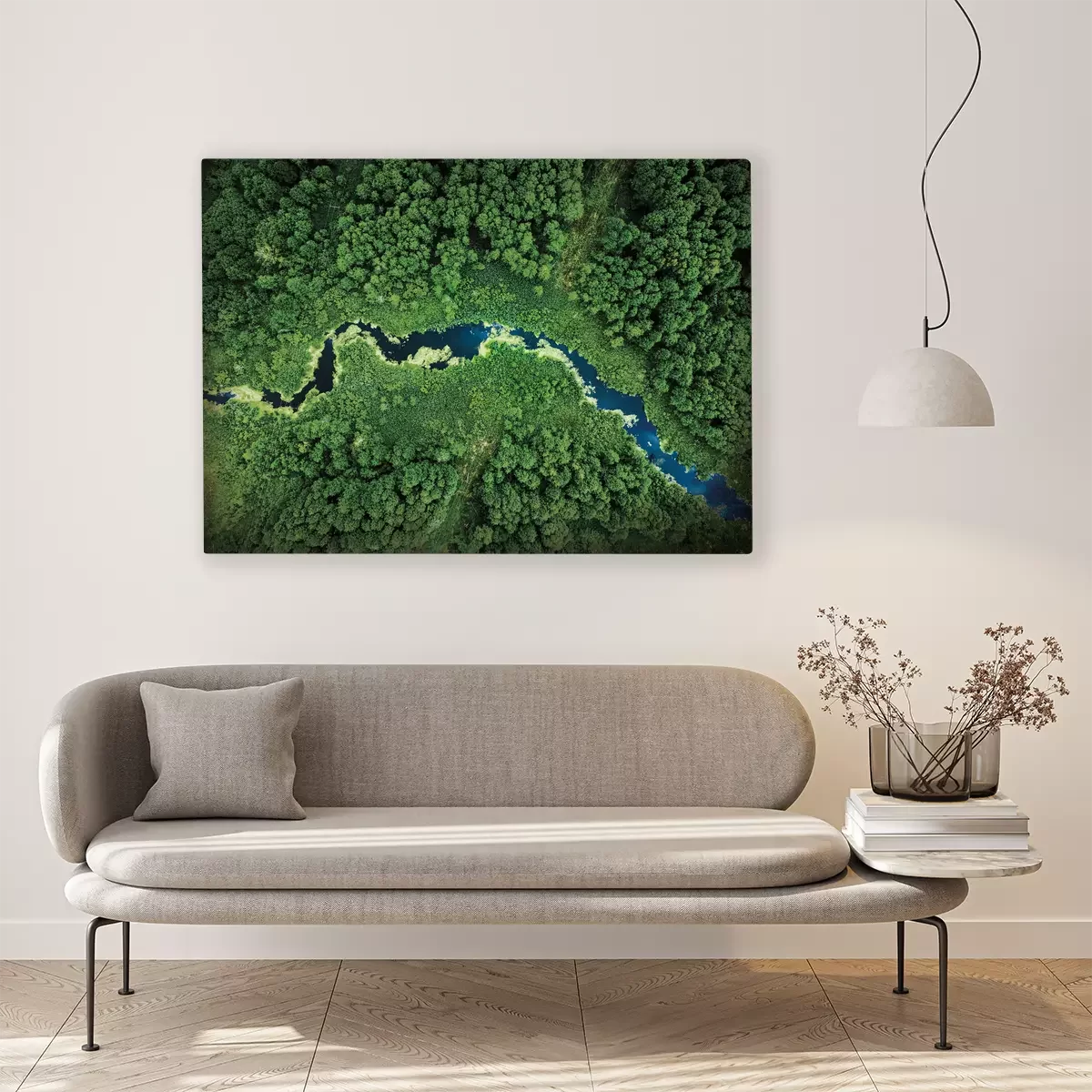 Een bosvallei met een kronkelende rivier