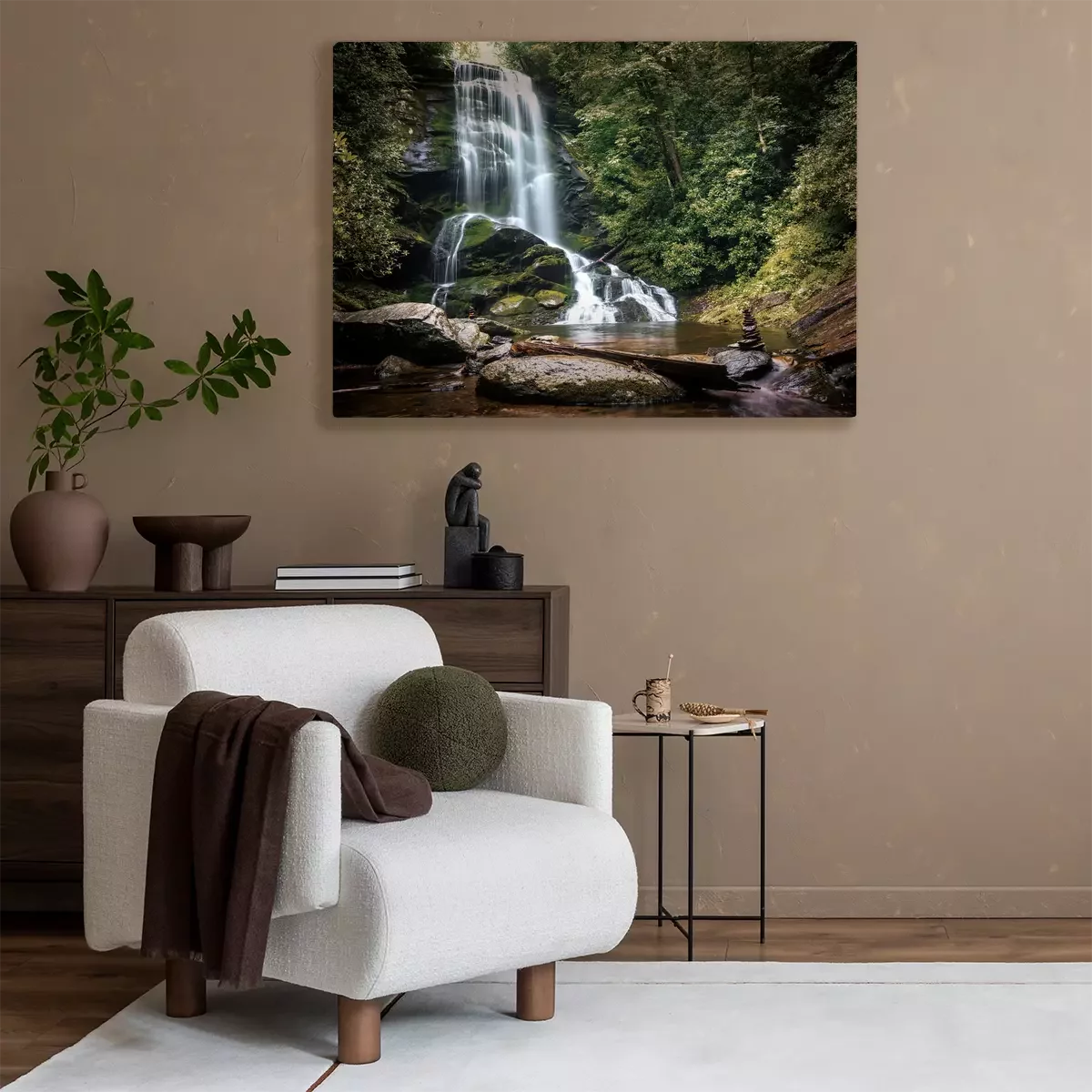 Een boswaterval tussen het groen