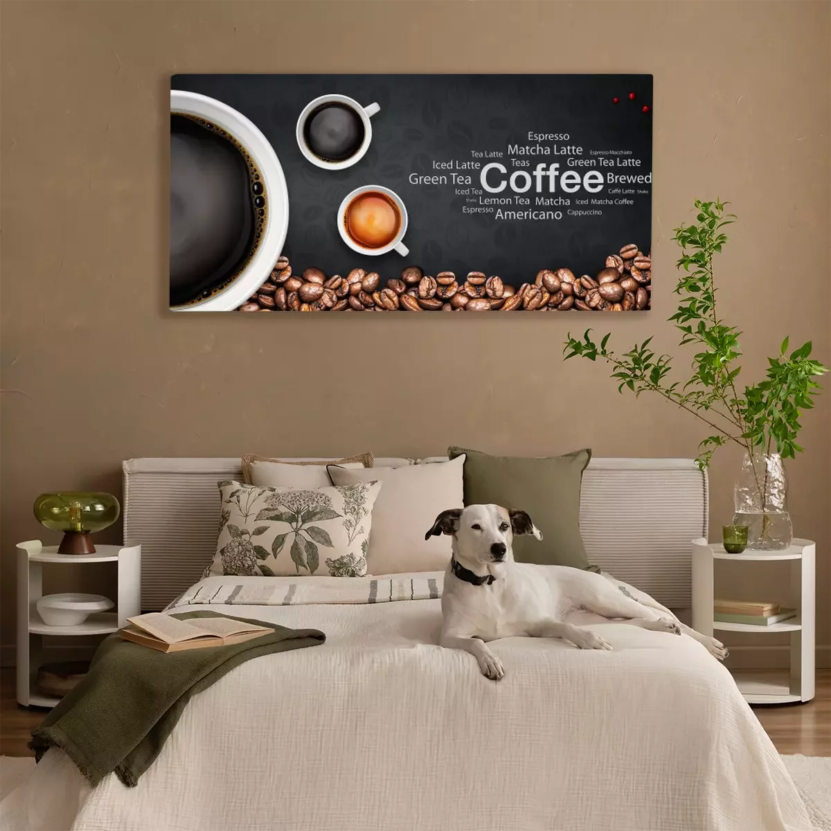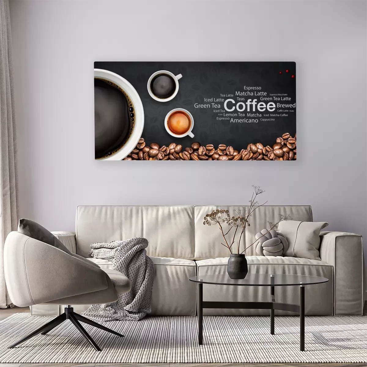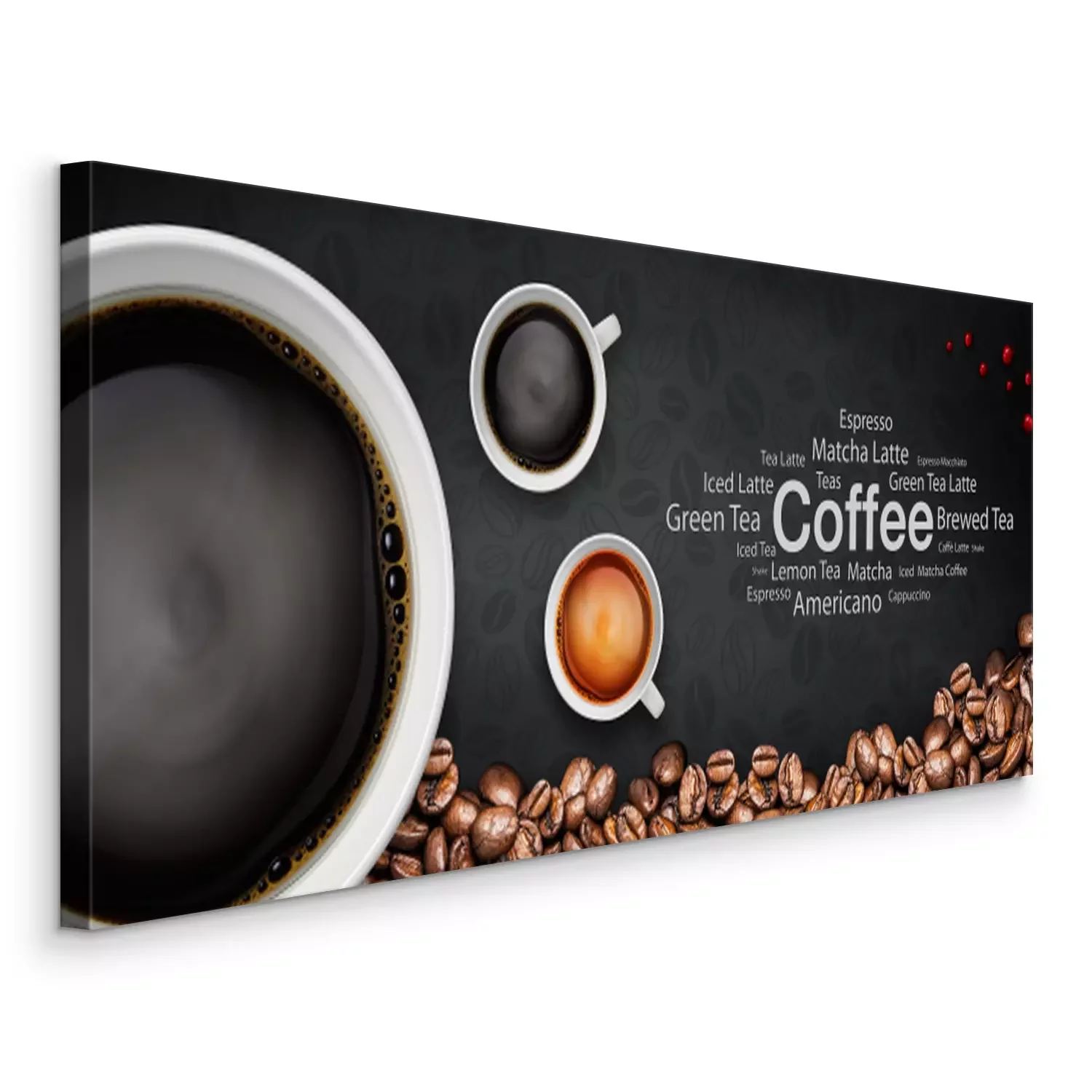 Canvas: Een café-thema achtergrond met kopjes en inscripties