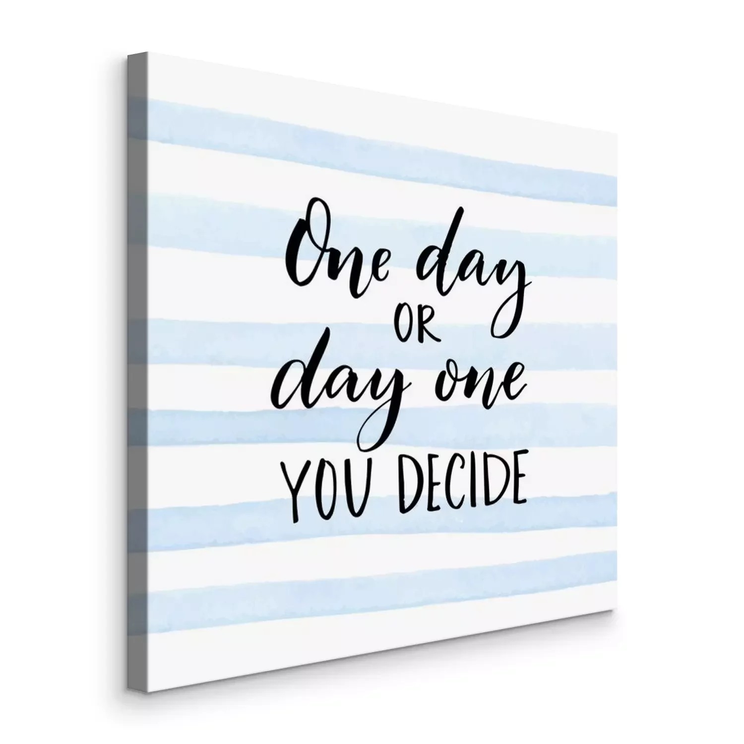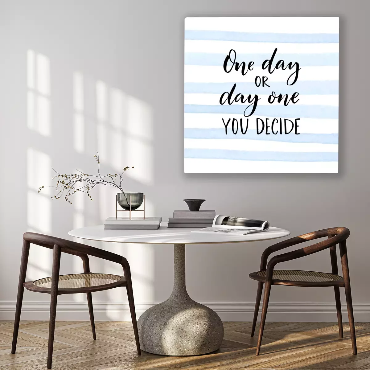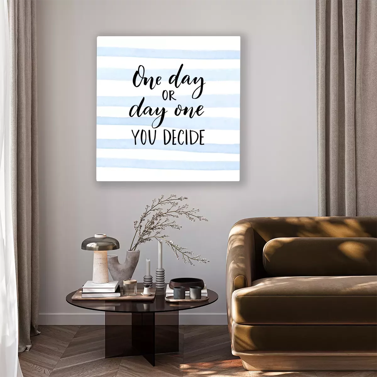 Canvas Eén dag of dag één. Jij beslist. Motivatiecitaat over start.