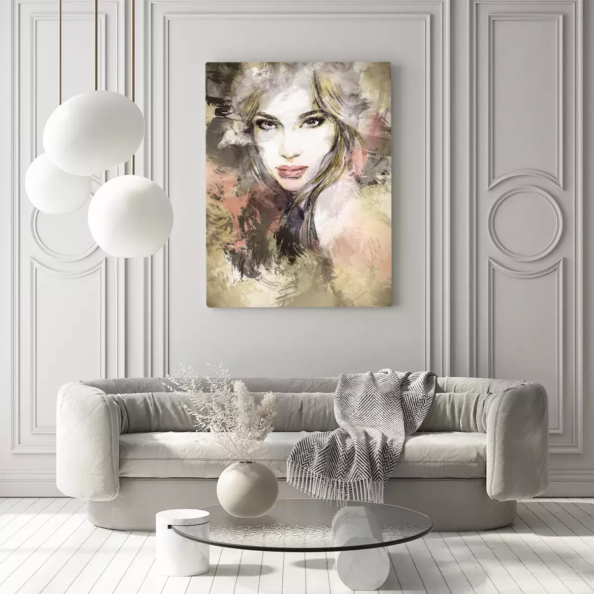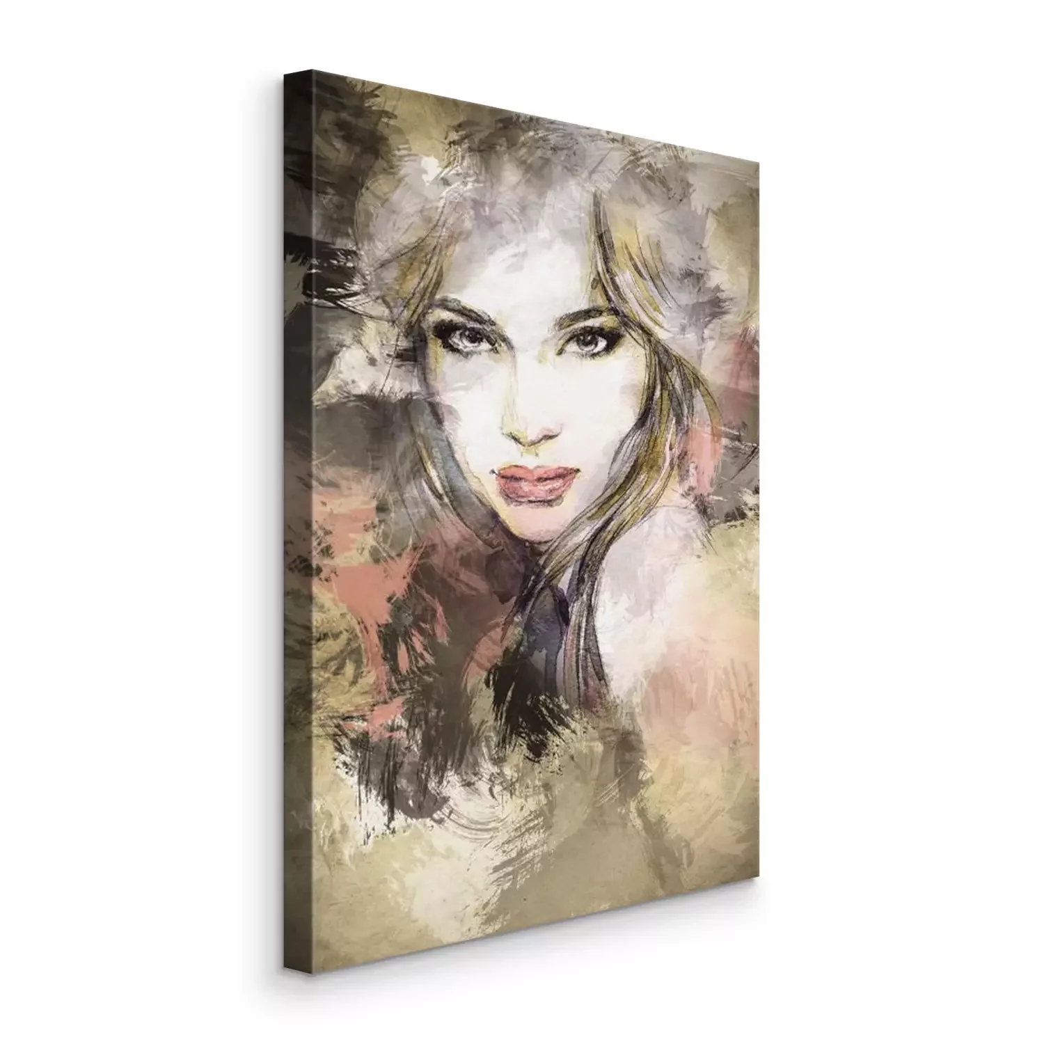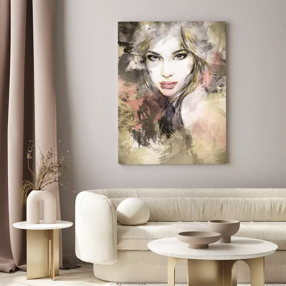Canvas: Een delicaat portret van een vrouw met donker haar