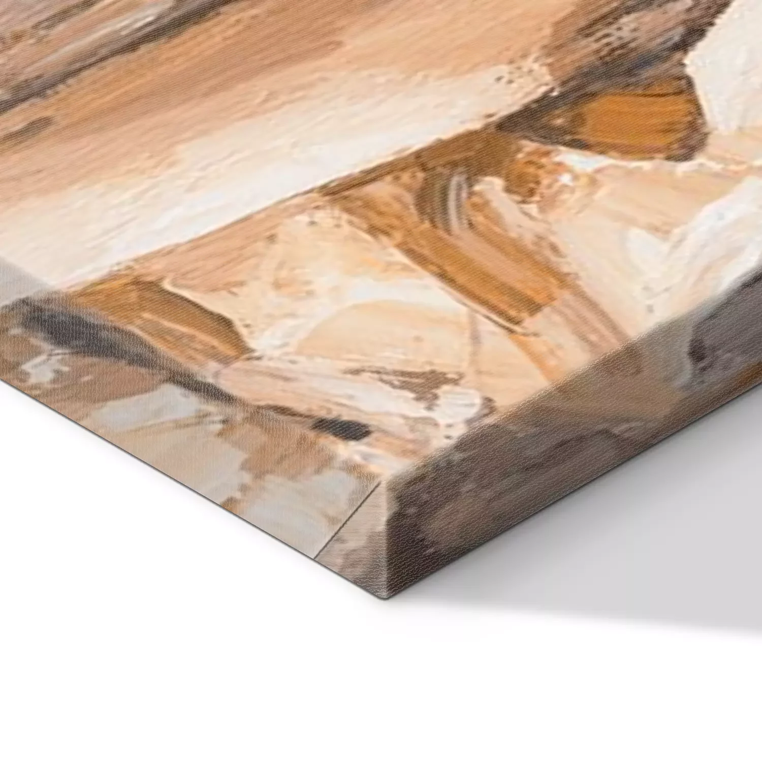 De print wordt aangebracht op hoogwaardig canvas dat op een schildersweefgetouw (spieraam) wordt gespannen. Omdat de print de zijranden bedekt, hoeft het ontwerp niet met een extra kader te worden omlijst. Wij raden ook composities aan die uit meerdere foto's bestaan en zo een coherente compositie vormen.