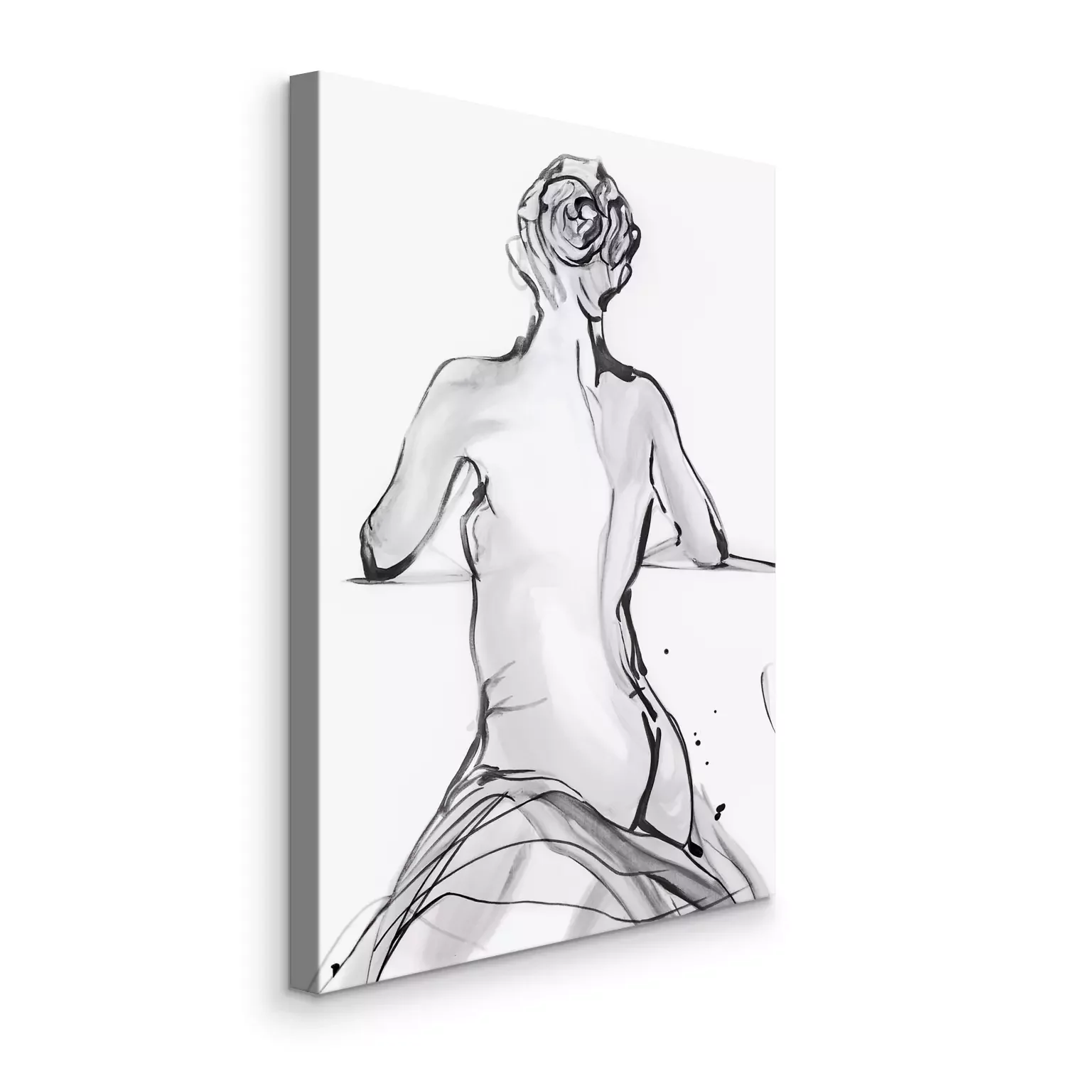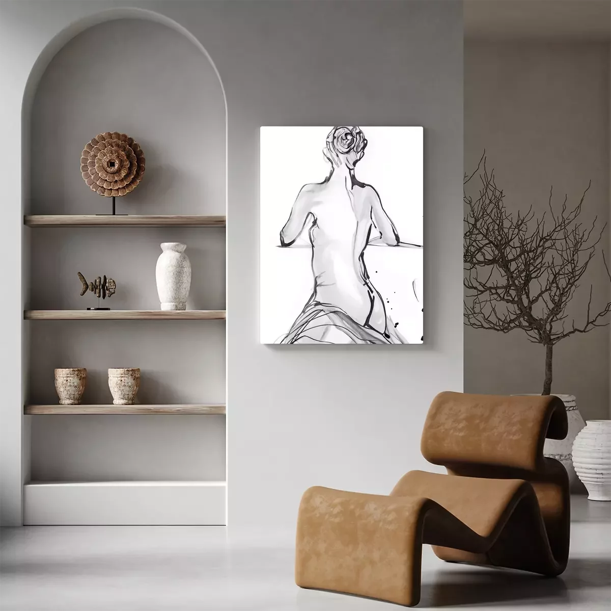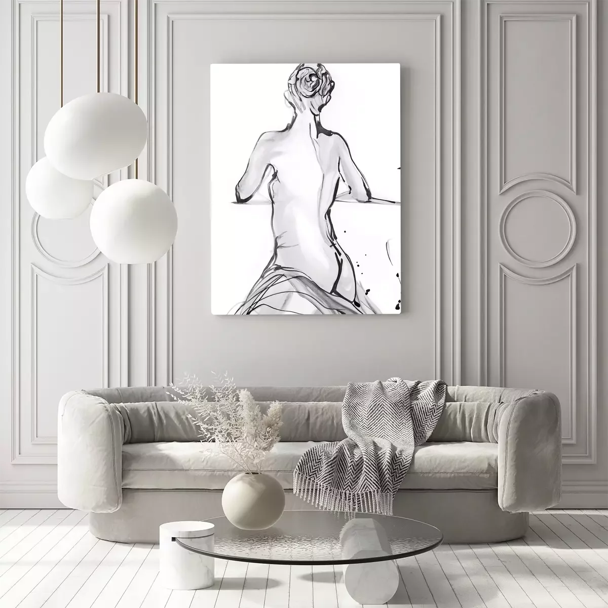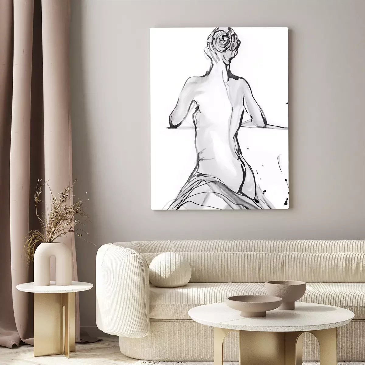 Een delicate schets van een vrouw met haar rug naar haar toegekeerd
